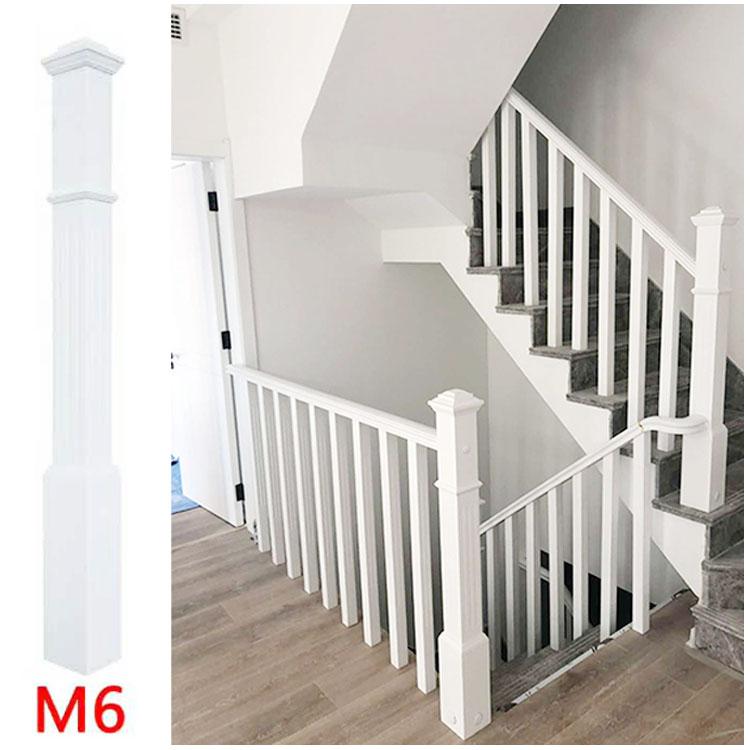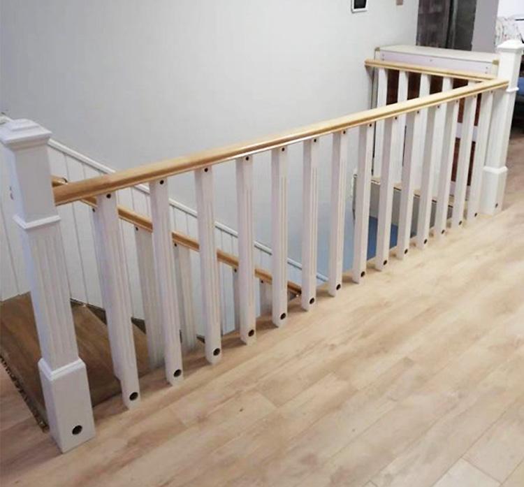 Pasamanos de escalera de estilo simple, barandilla de escalera de madera maciza de troncos para interiores, barandilla de columna de madera maciza de estilo moderno blanco