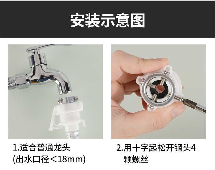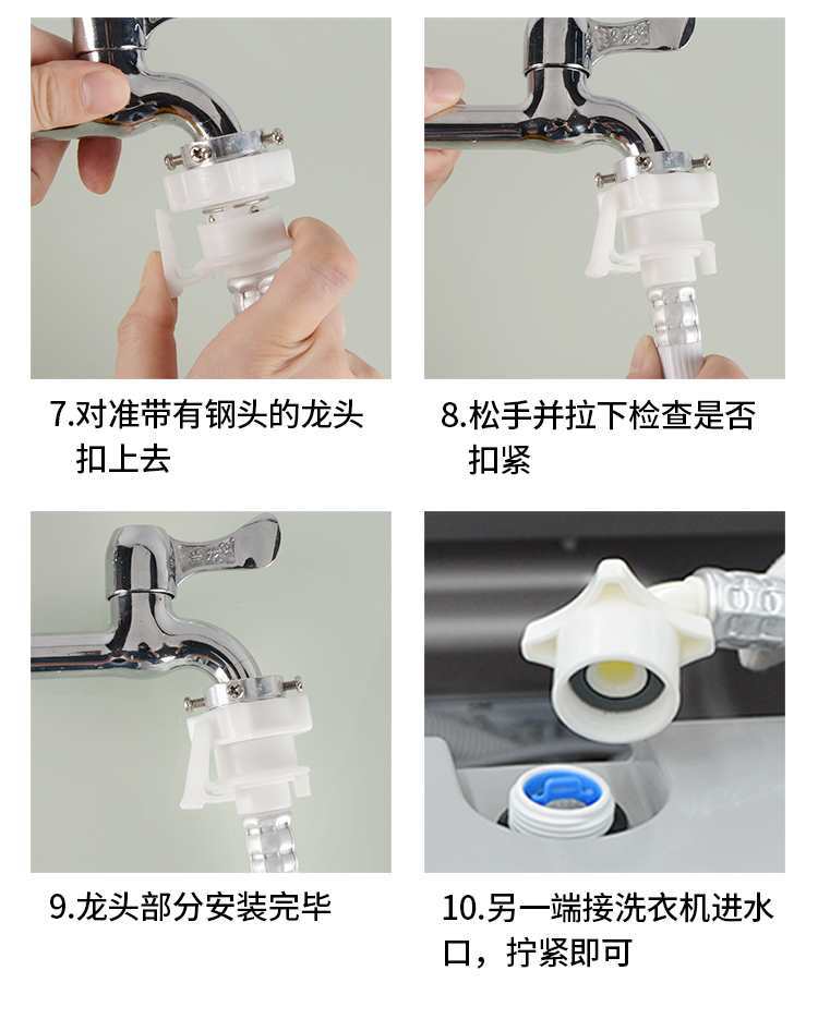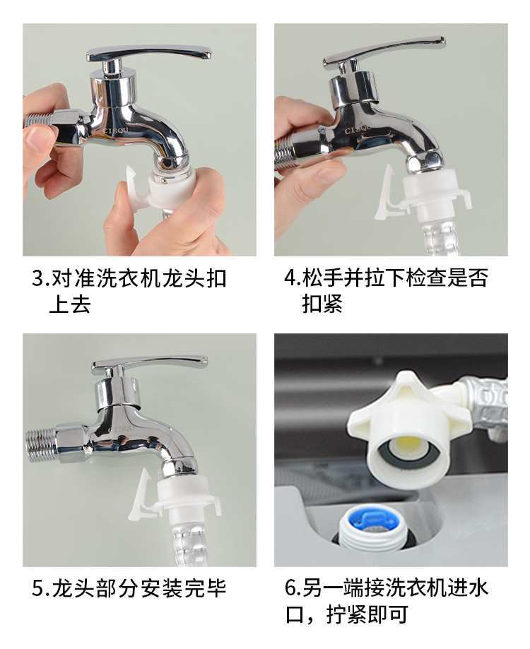 Conector de tubería de entrada de lavadora, 4 puntos, hebilla de boquilla, adaptador de grifo, tubería, cabezal de acero metálico, accesorios de sellado