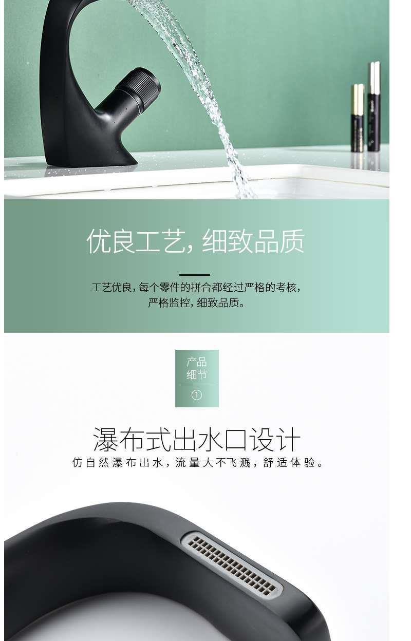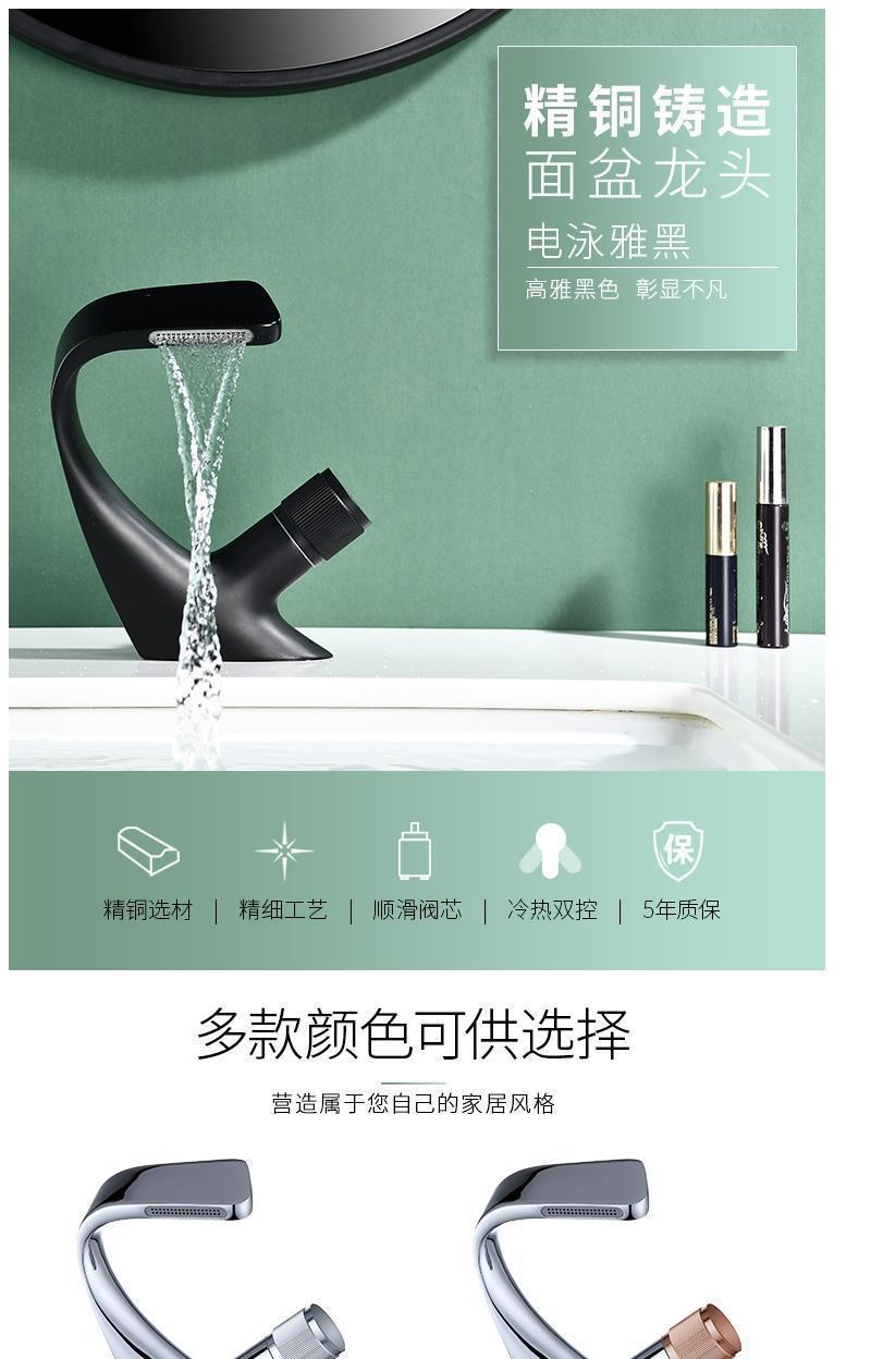 Brass weighted elegant black hot and cold waterfall single hole, brass plating rose gold hot and cold waterfal...
