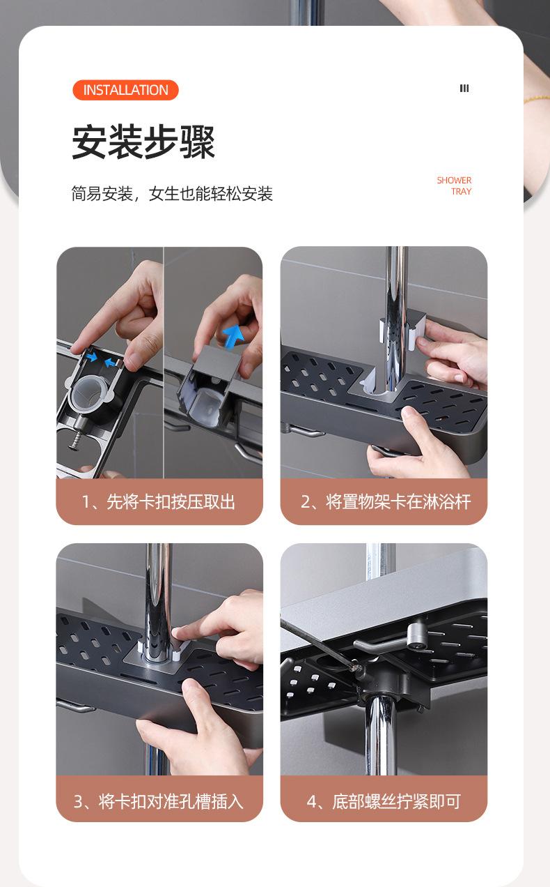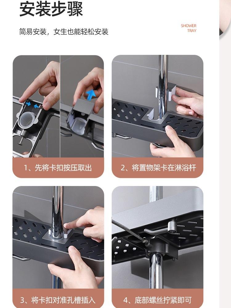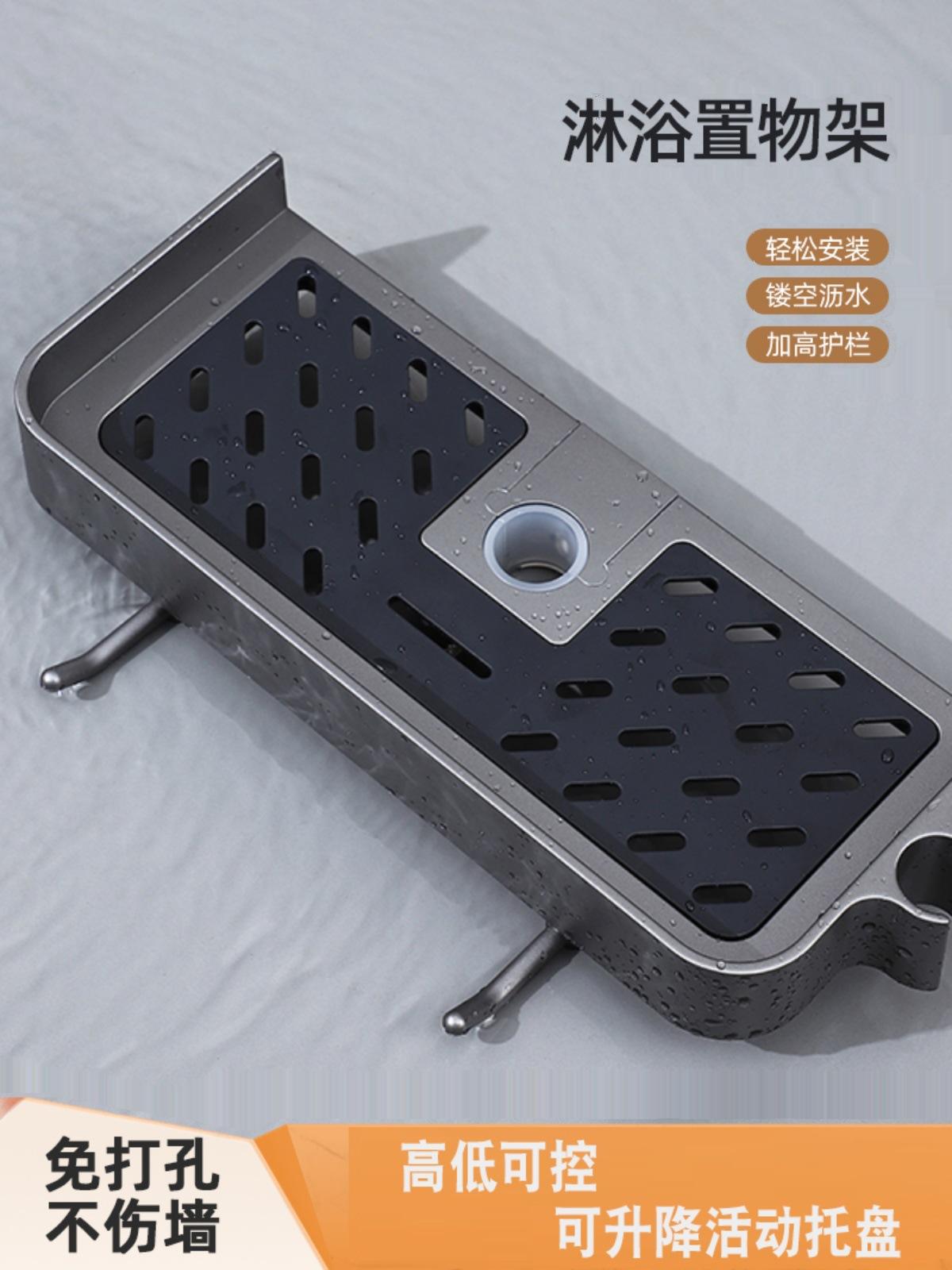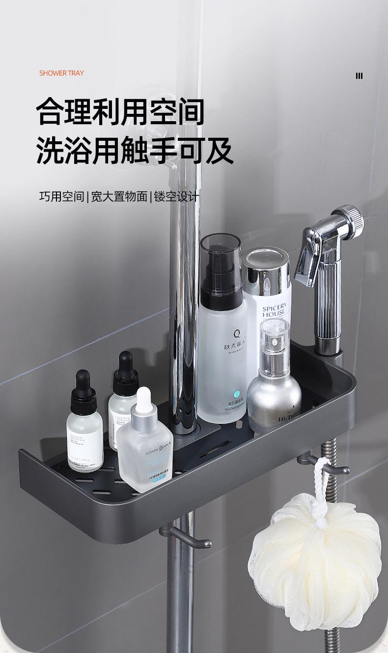 Estante de almacenamiento para ducha transfronterizo, barra de ducha para inodoro sin perforaciones, bandeja de baño, estante de almacenamiento para el hogar, estante de cesta