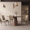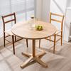 [Material]: Tablero multicapa con sobre de chapa de roble blanco, columna de madera maciza de roble blanco, patas de mesa de madera curvada