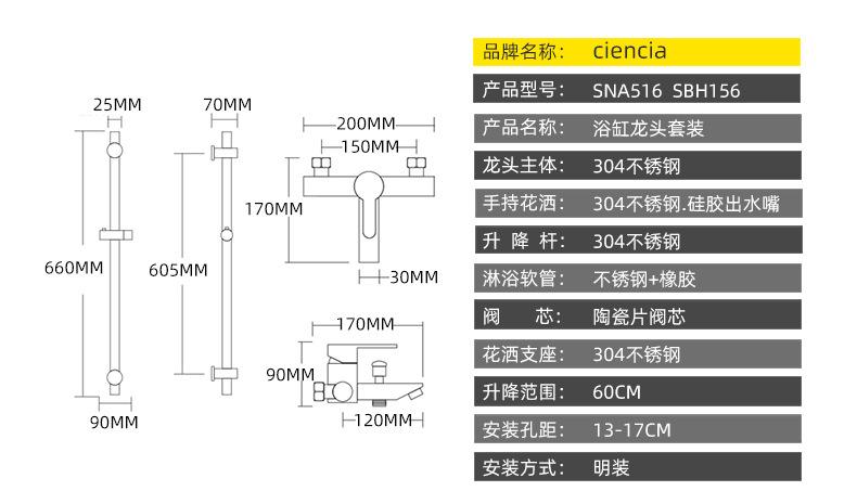 A bracket + shower + hose SBH156F, B single bracket SBH156