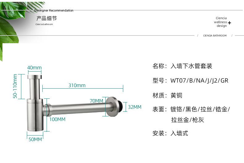 Desodorante de cobre para lavabo, desagüe para baño, inodoro, lavabo de pared, tubería de desagüe, accesorios de desagüe