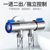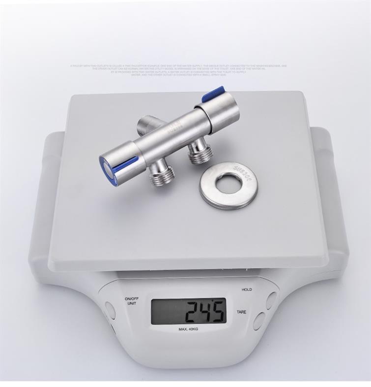 Inodoro de acero inoxidable 304, válvula angular de tres vías, separador de agua, control doble, válvula triangular de doble salida.