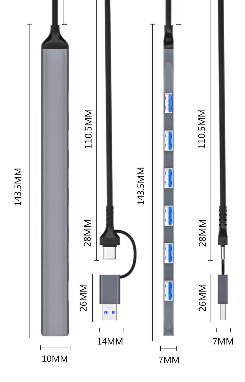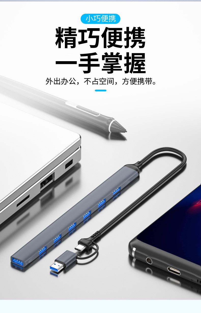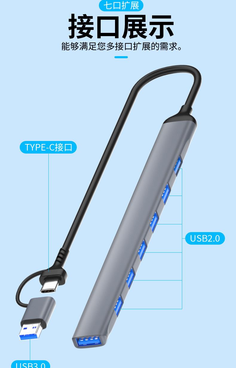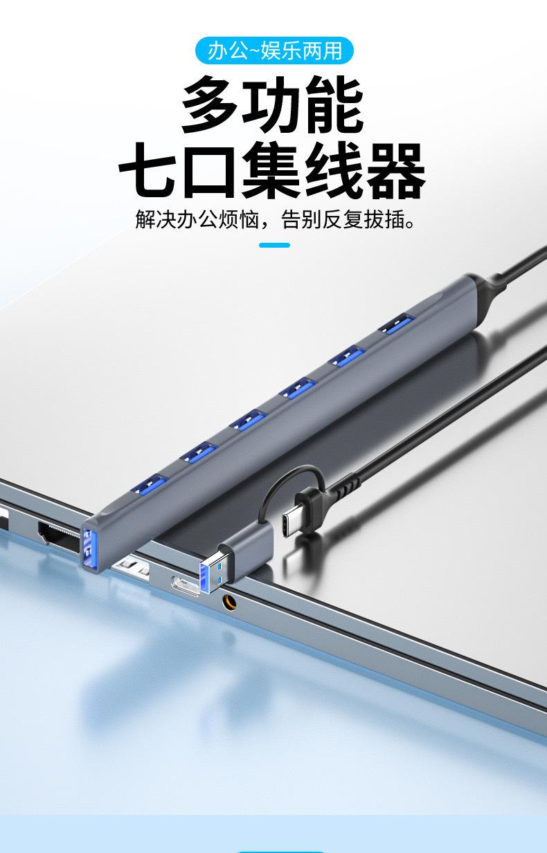 Extensor USB de uno a siete, concentrador de alta velocidad, base de expansión de 7 puertos, divisor, estación de acoplamiento para computadora multifunción