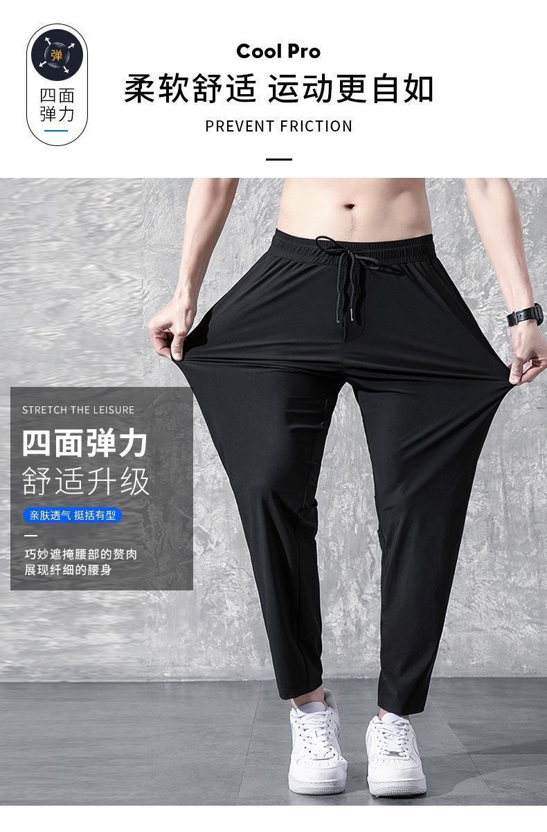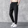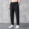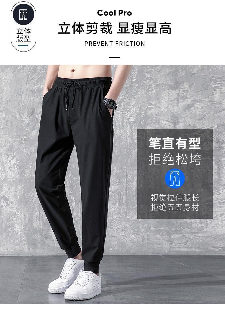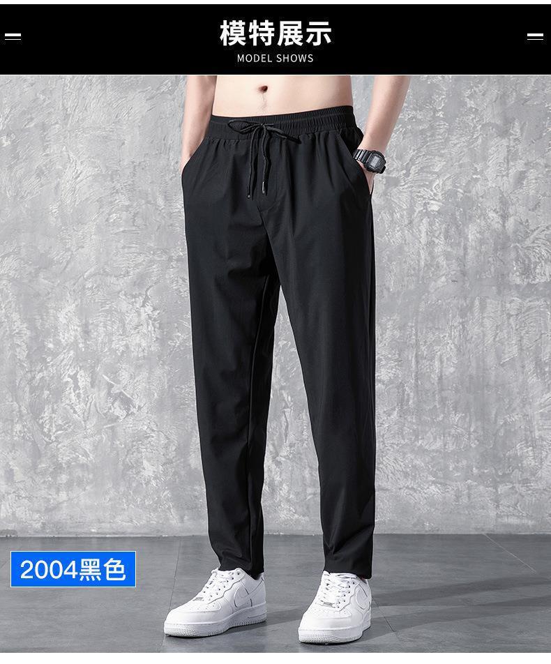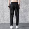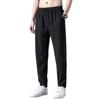 Pantalones casuales para hombre, finos, de seda helada, de verano, estilo coreano, negros, rectos, de talla grande, 2023, nuevos pantalones ajustados con tobillos atados