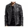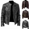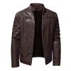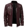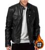 Cárdigan cálido de invierno para hombre de negocios de comercio exterior, con cremallera, decoración de bolsillo, cuello alto de piel PU, chaqueta de cuero ajustada