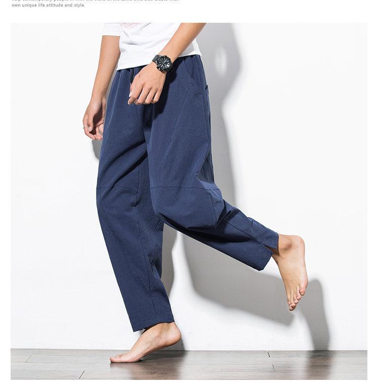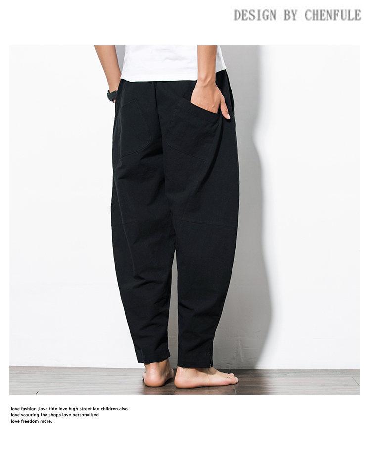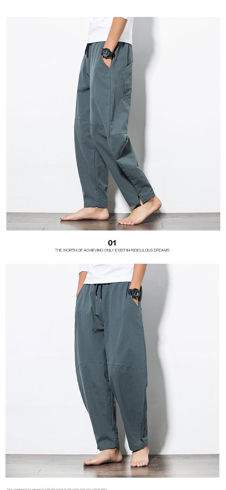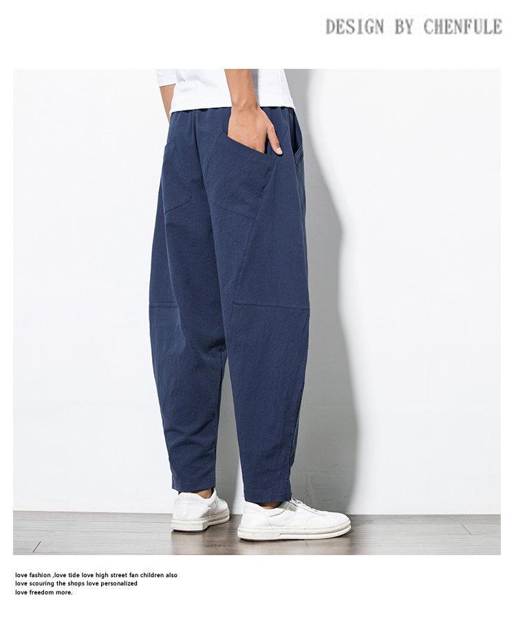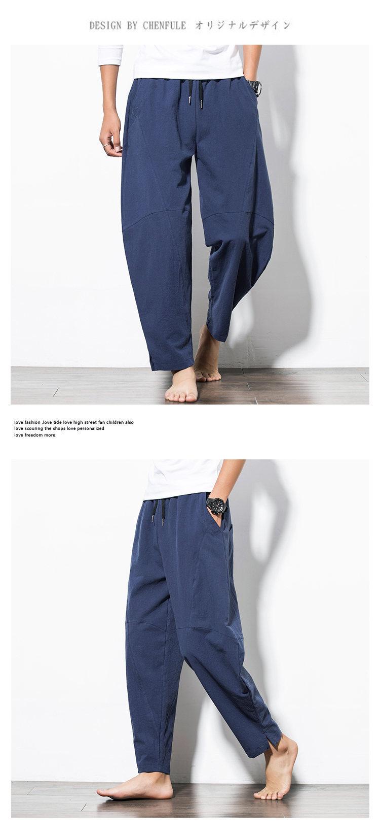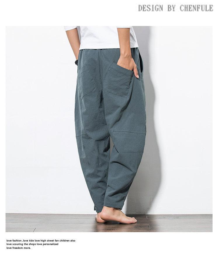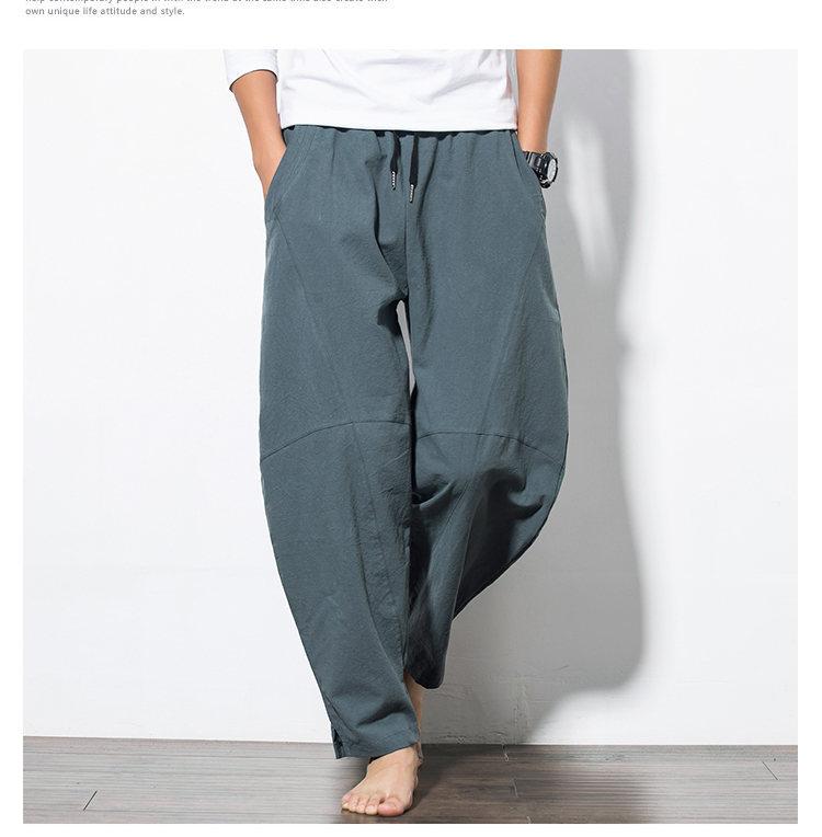 Venta al por mayor de fábrica 2023 moda pantalones holgados para hombre talla grande talla grande algodón y lino pantalones casuales estilo chino pantalones harén comercio exterior