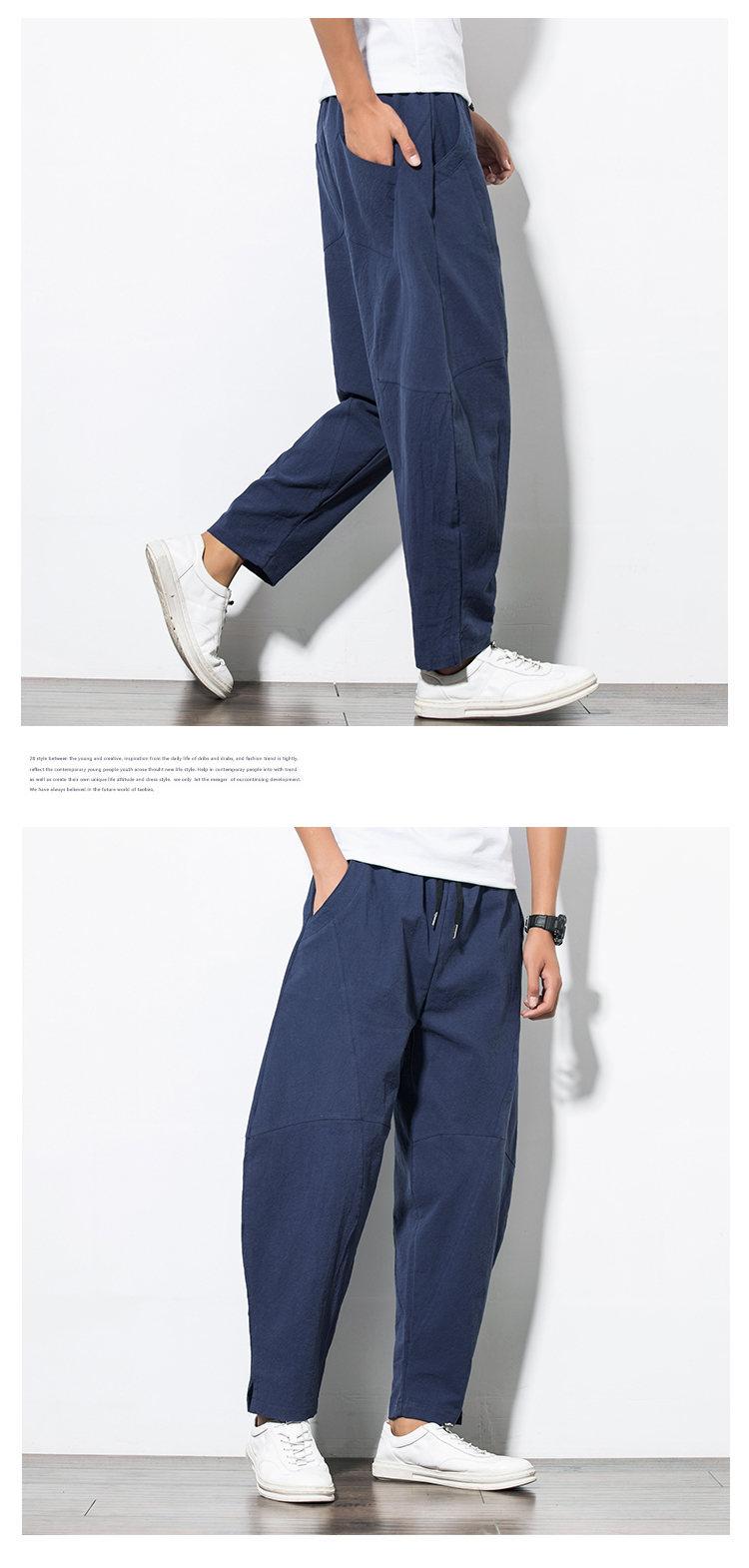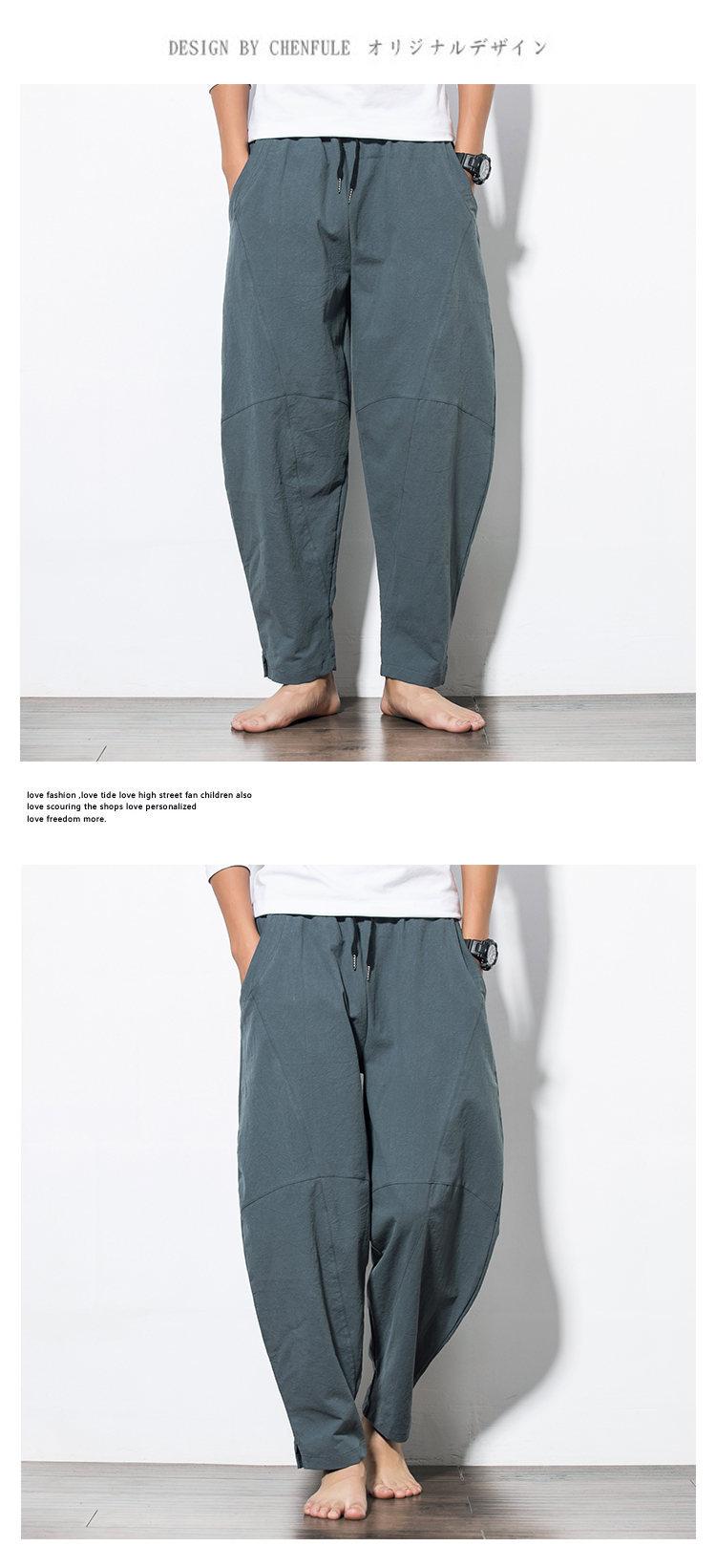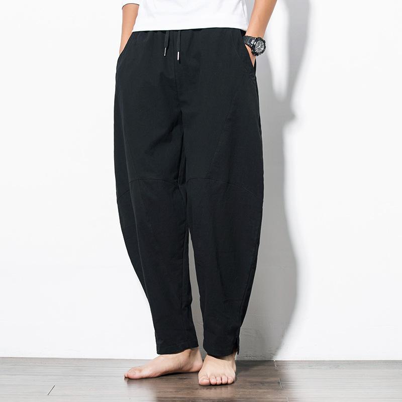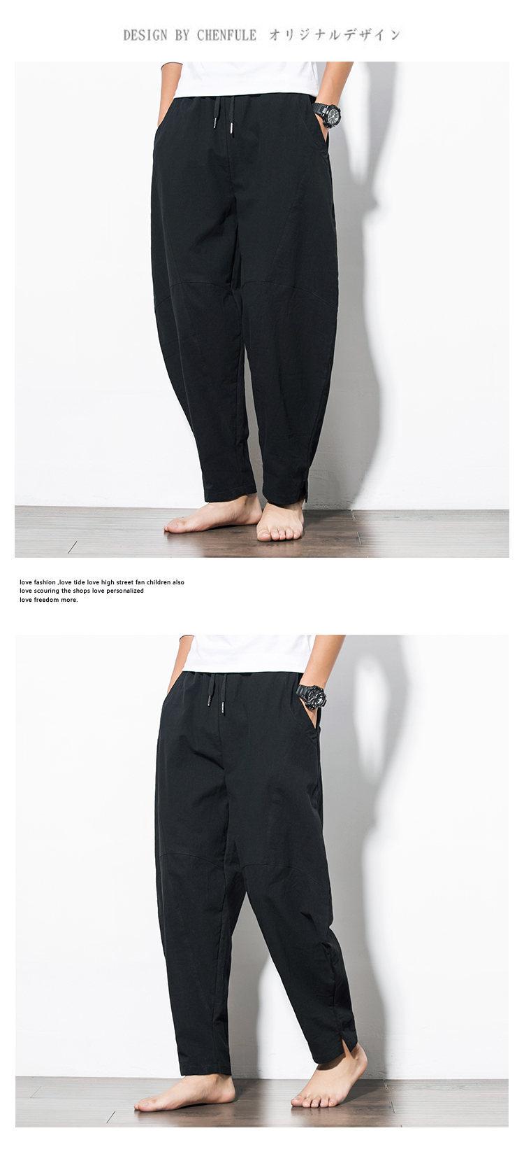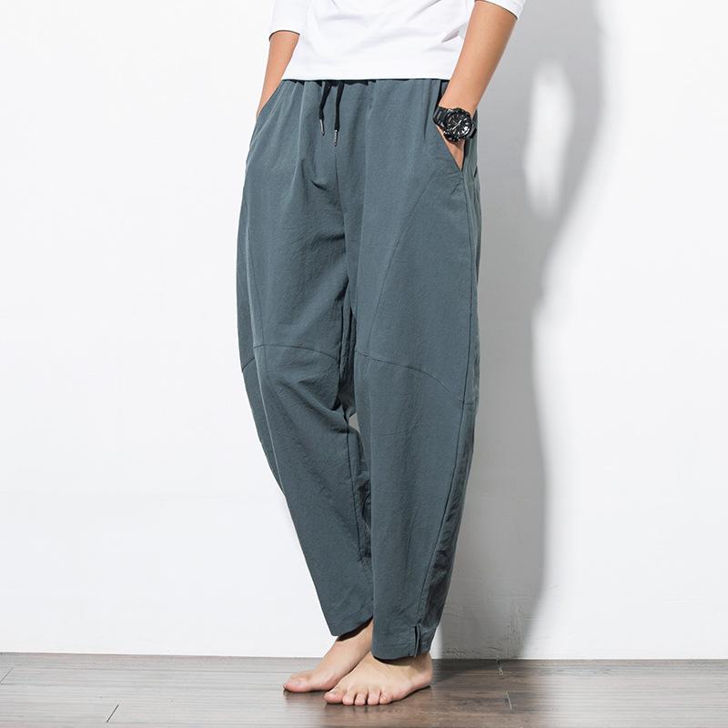 Venta al por mayor de fábrica 2023 moda pantalones holgados para hombre talla grande talla grande algodón y lino pantalones casuales estilo chino pantalones harén comercio exterior