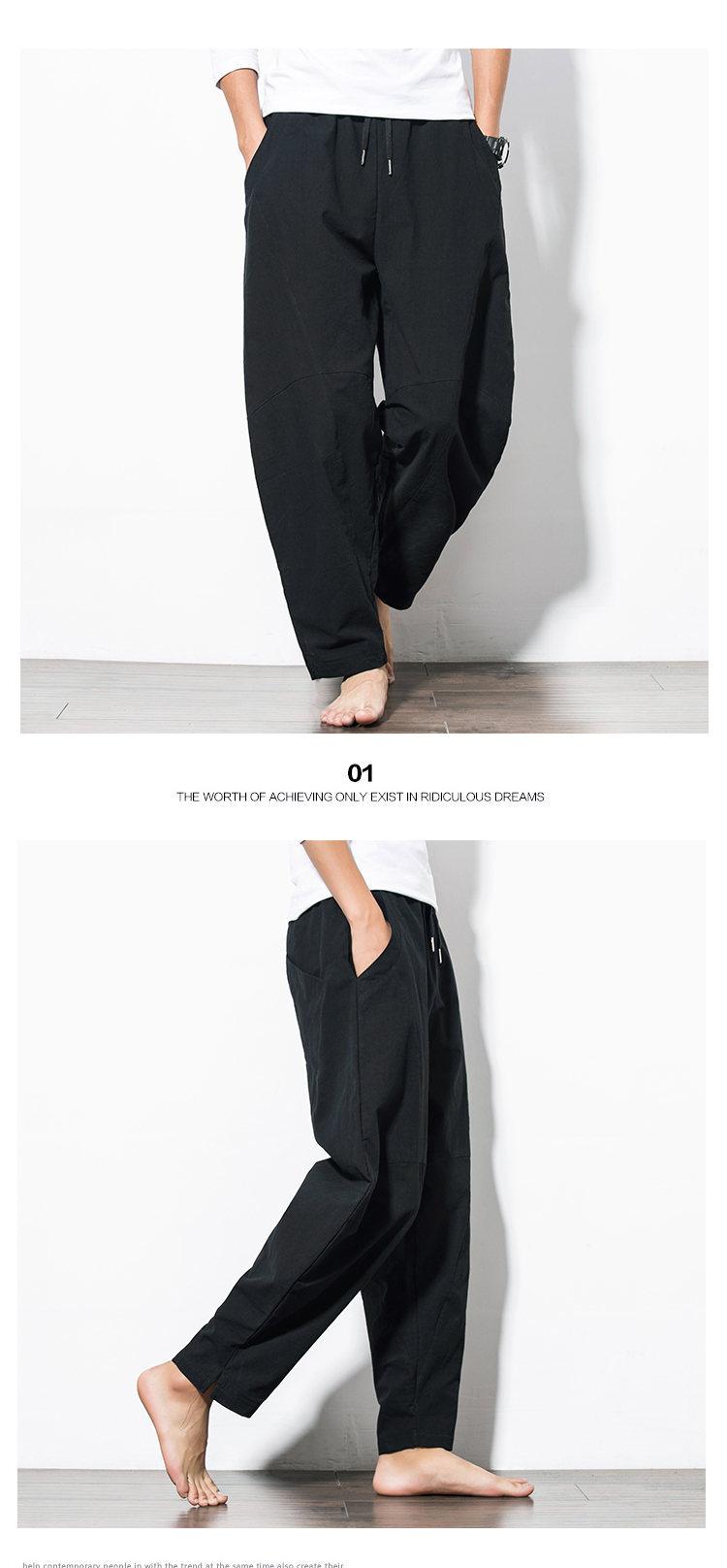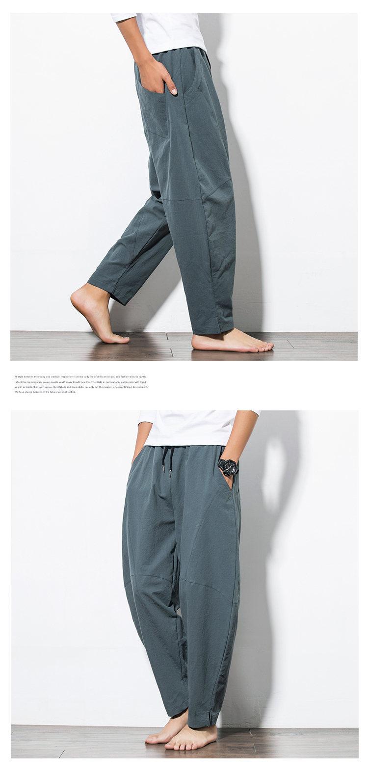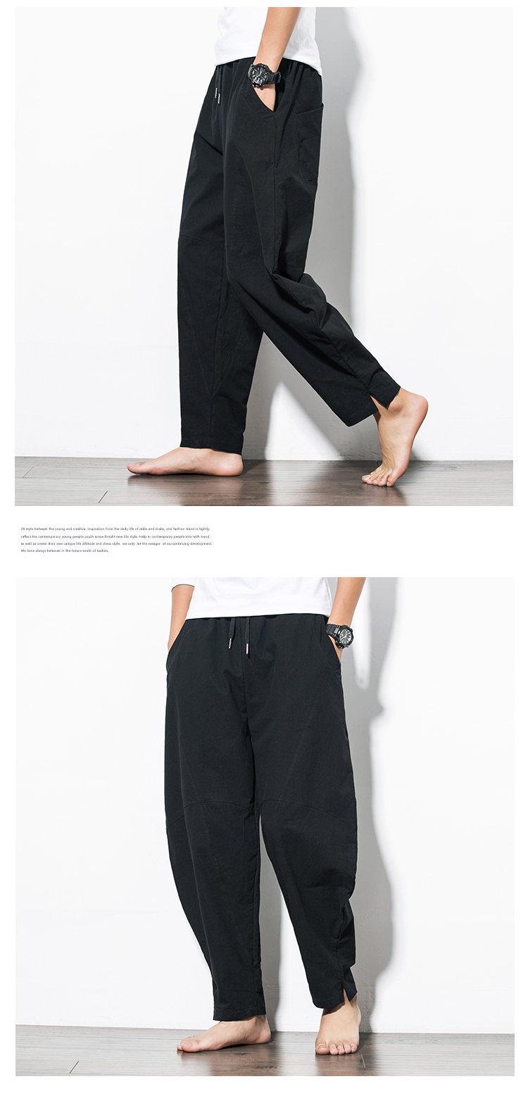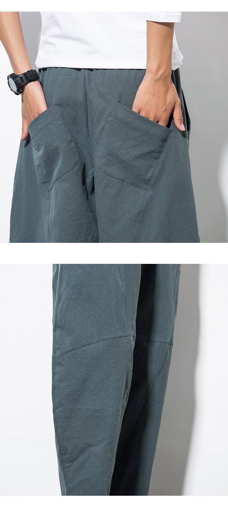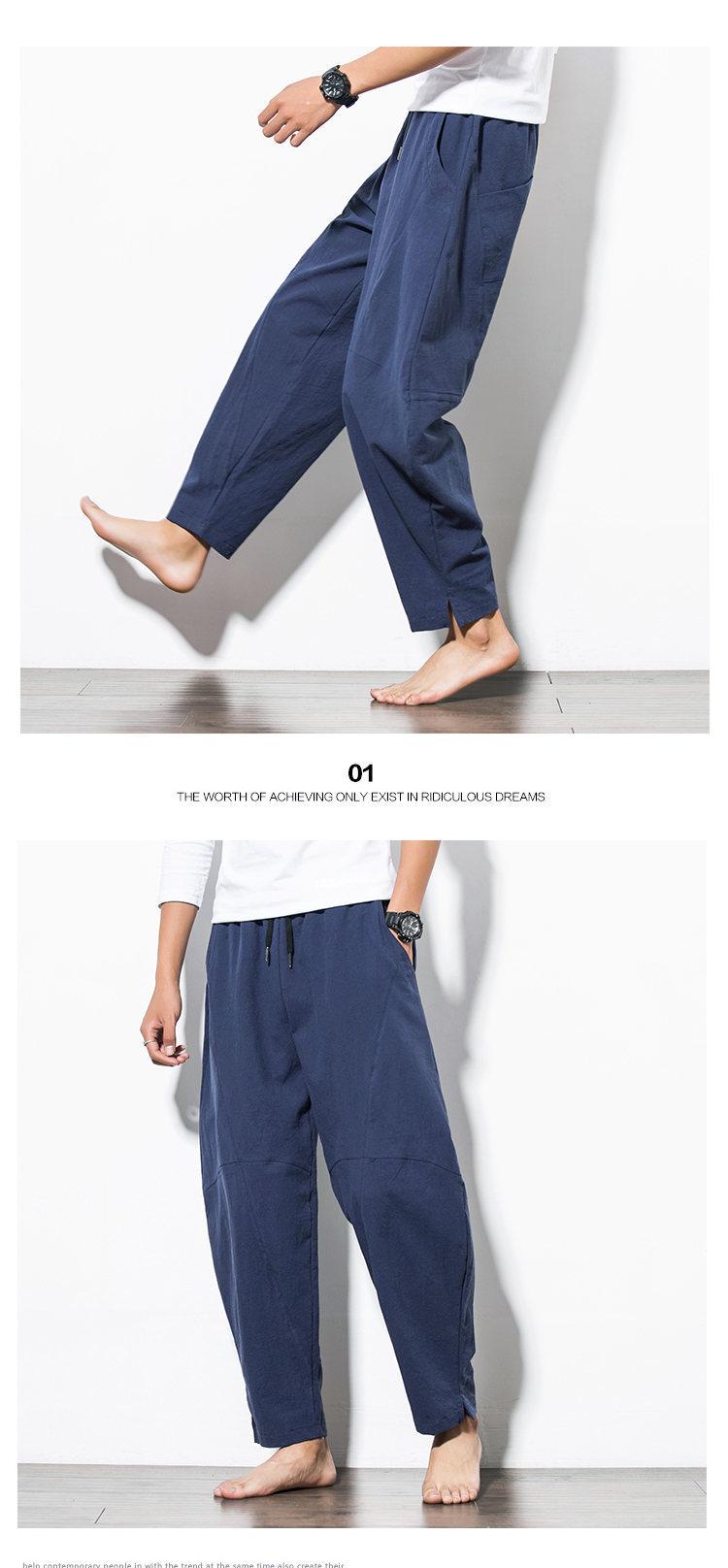 Venta al por mayor de fábrica 2023 moda pantalones holgados para hombre talla grande talla grande algodón y lino pantalones casuales estilo chino pantalones harén comercio exterior