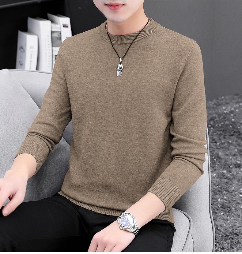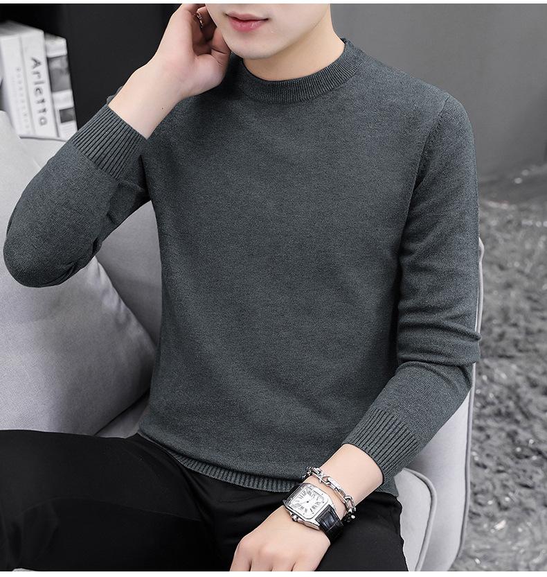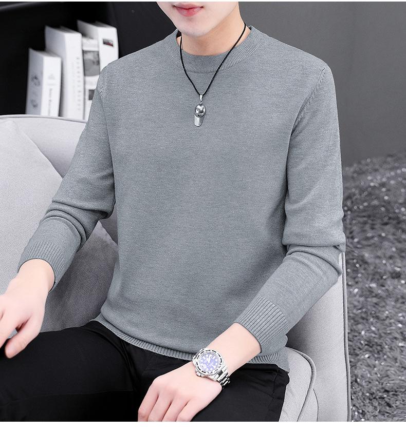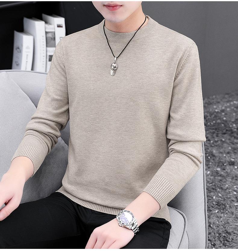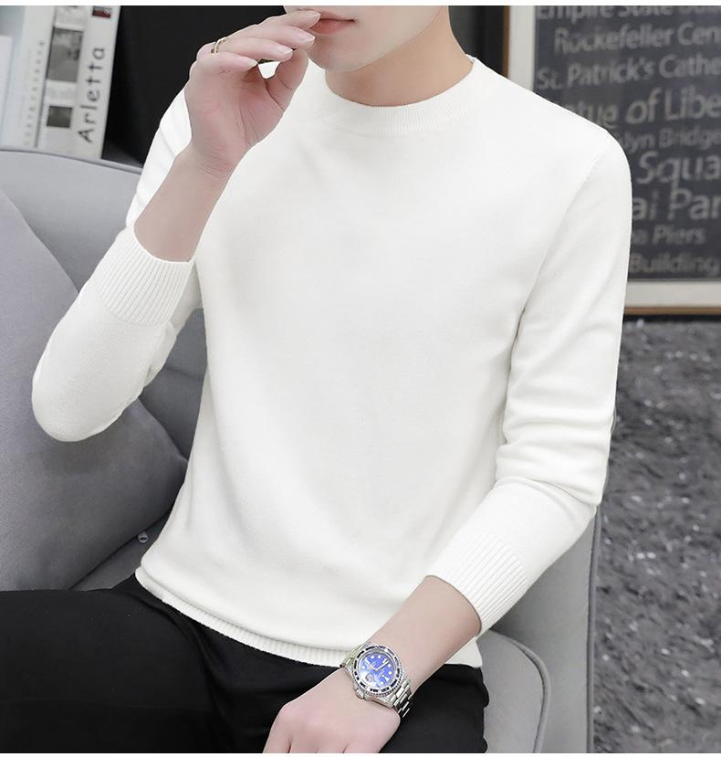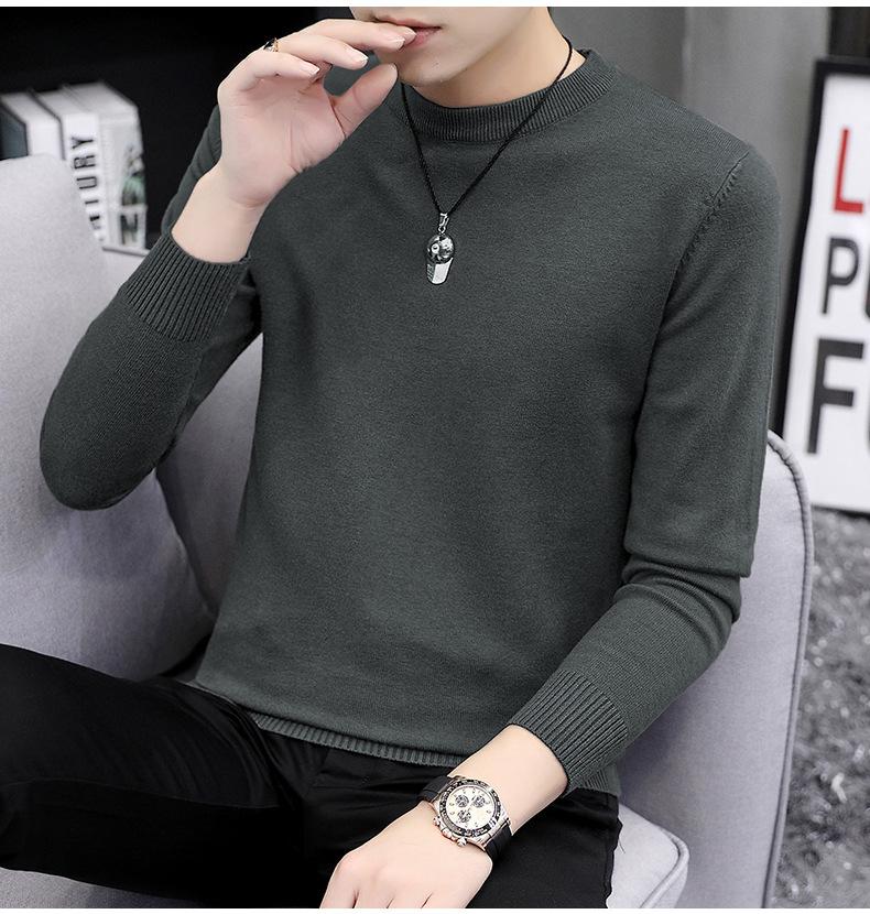 Suéter para hombre cuello redondo suéter otoño e invierno cálido camiseta interior suéter color sólido suéter ajuste ceñido moderno
