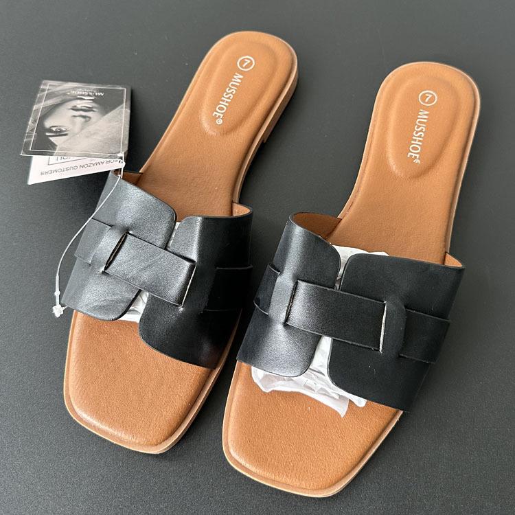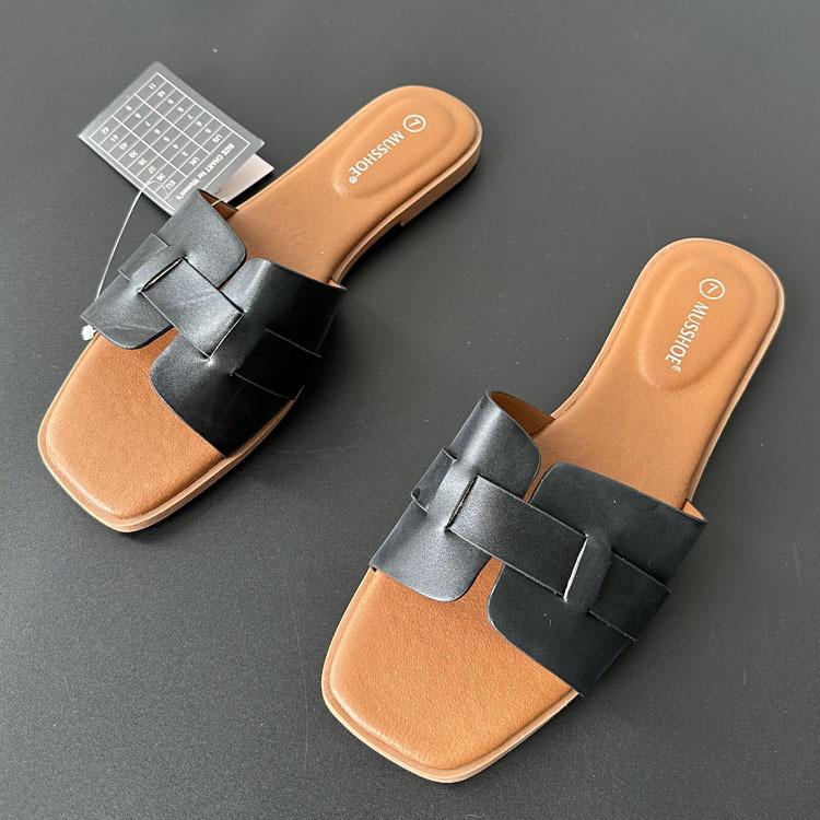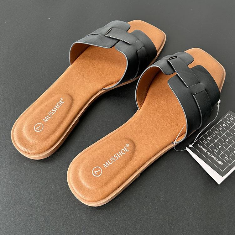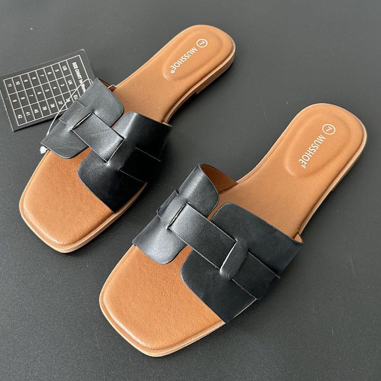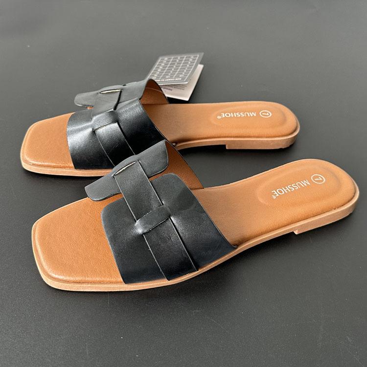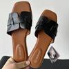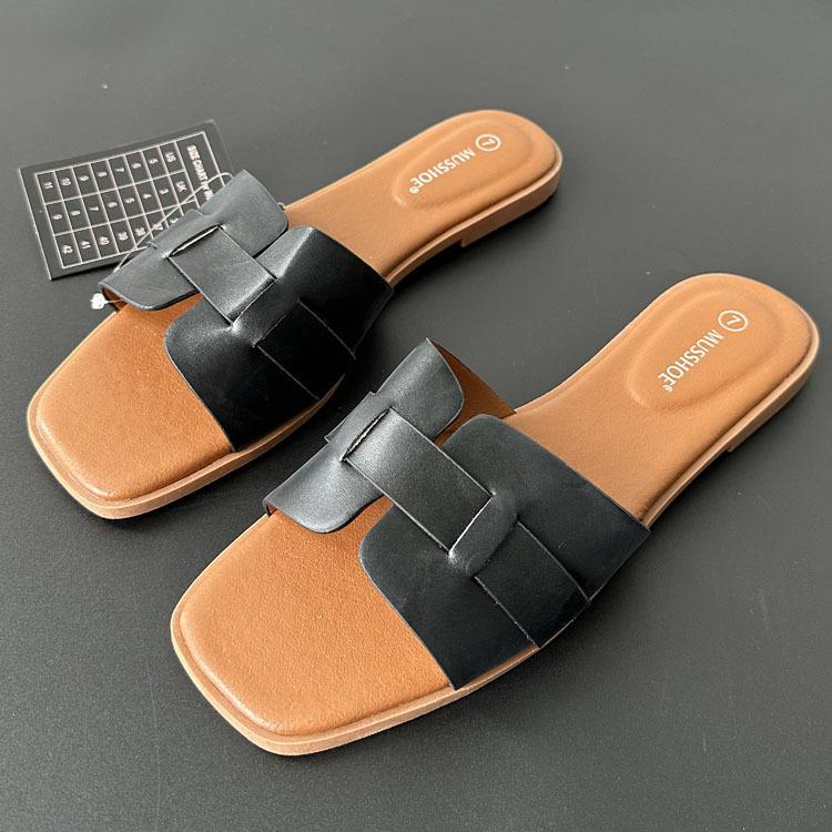 2024 verano nueva línea en forma de H zapatillas planas arrastre H uso diario zapatillas de mujer venta al por mayor comercio exterior