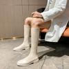 Botas largas de punta cuadrada para mujer, de piel suave, estilo caballero, con cremallera delgada, botas para mujer que no llegan a la rodilla, combinan con todo, botas largas de moda