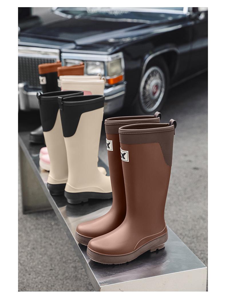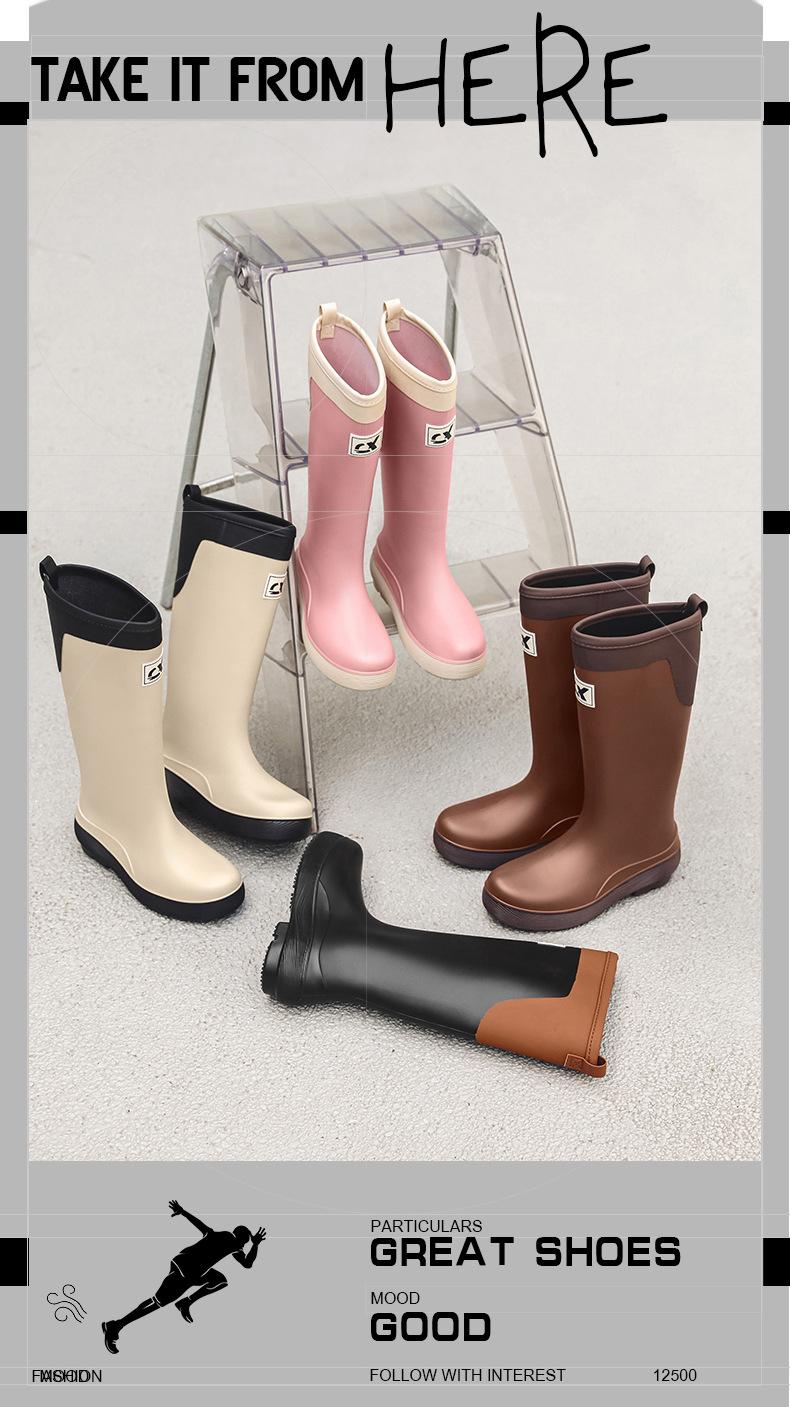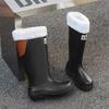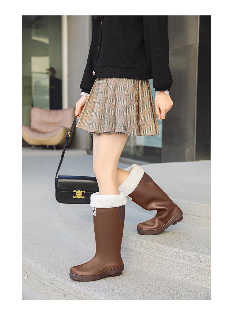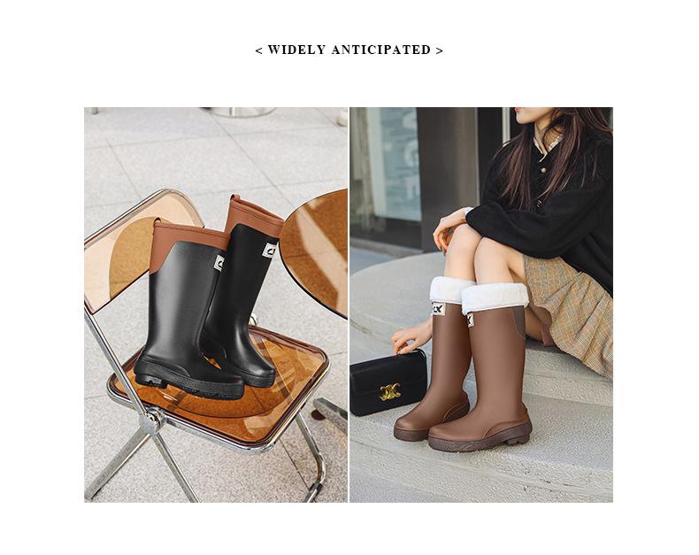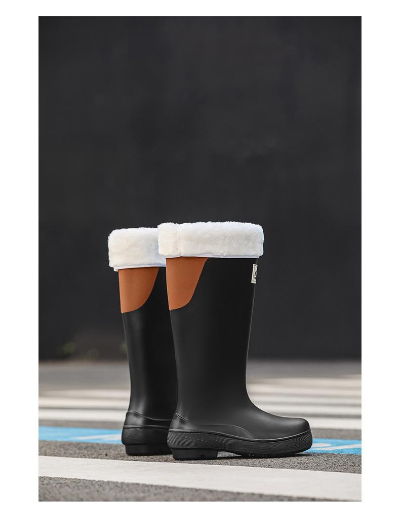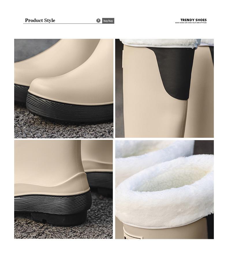 Botas de lluvia antideslizantes impermeables de estilo coreano transfronterizo Botas de lluvia universales para las cuatro estaciones extraíbles con relleno de algodón para mujer Zapatos de agua largos cómodos y resistentes al desgaste