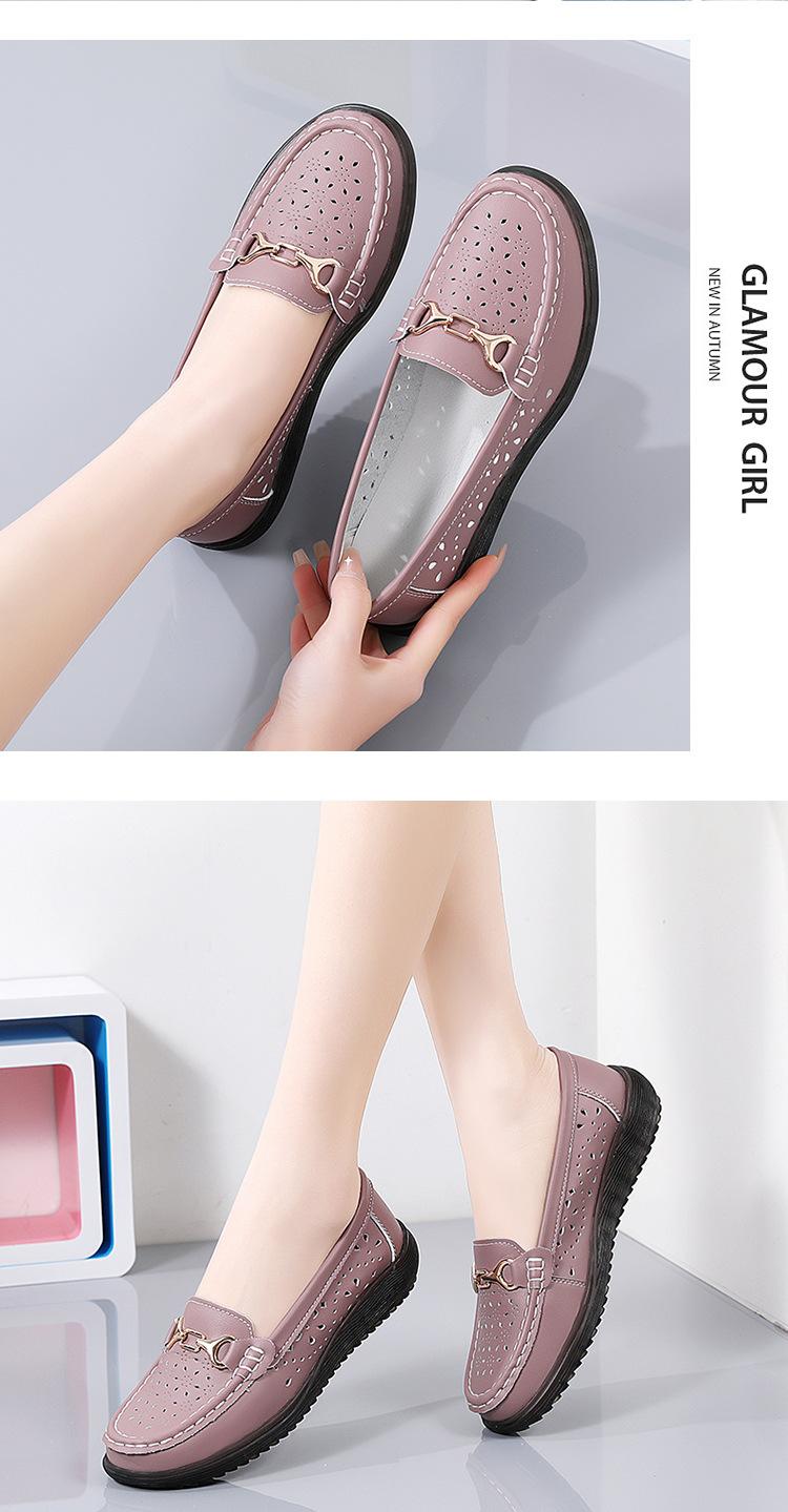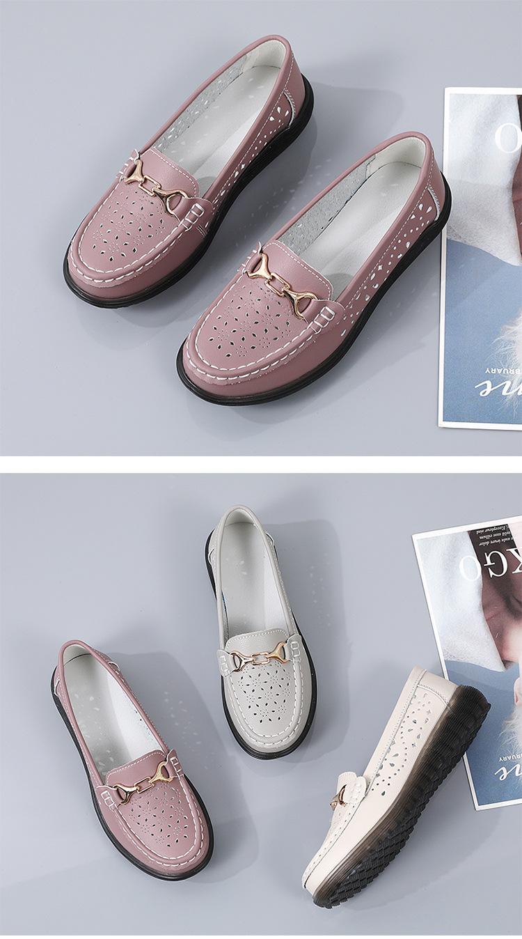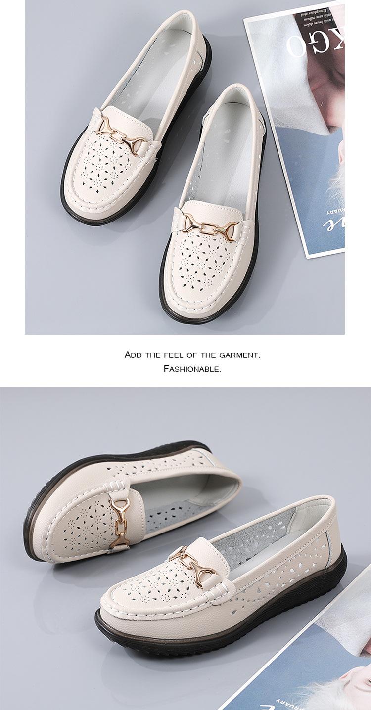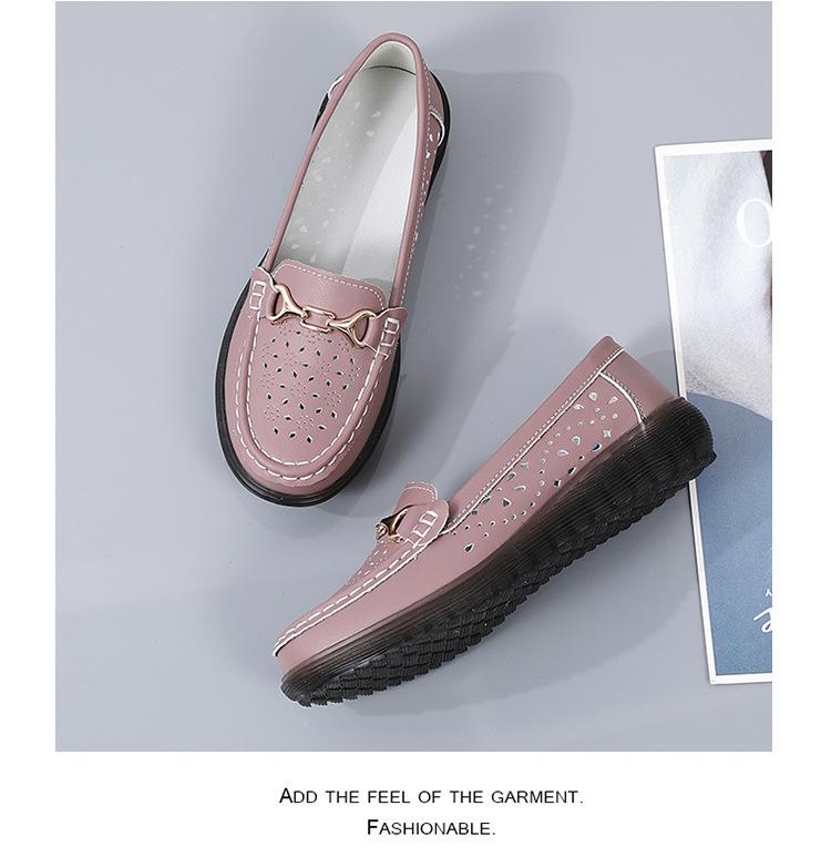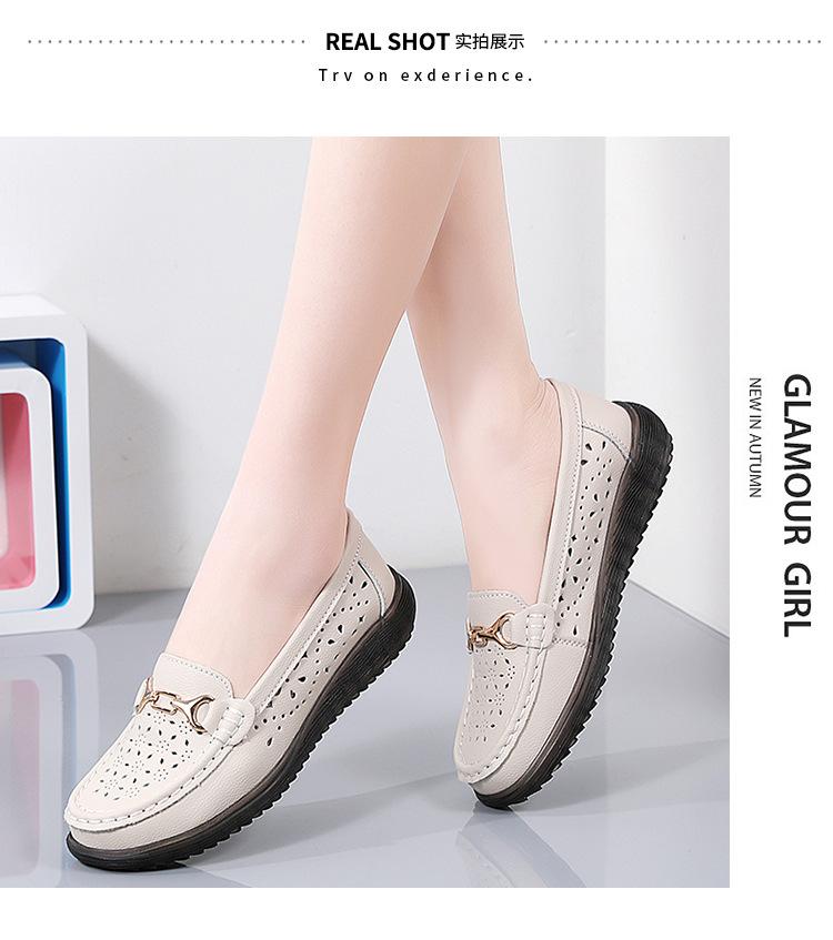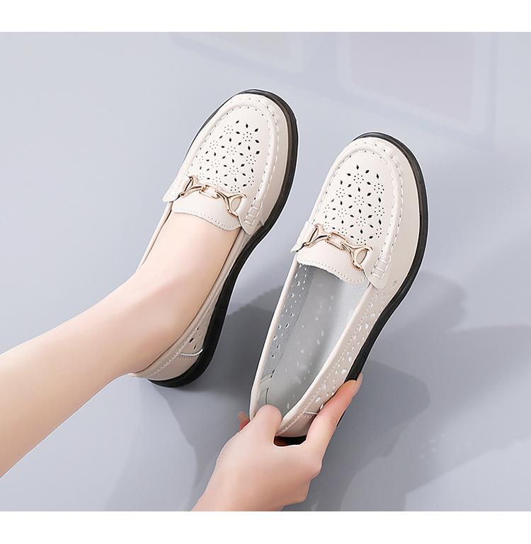 Zapatos de Madre Zapatos de Cuero Zapatos de Verano Zapatos de Suela Suave Zapatos Cómodos de Mujer de Mediana Edad Zapatos de Verano Huecos Transpirables