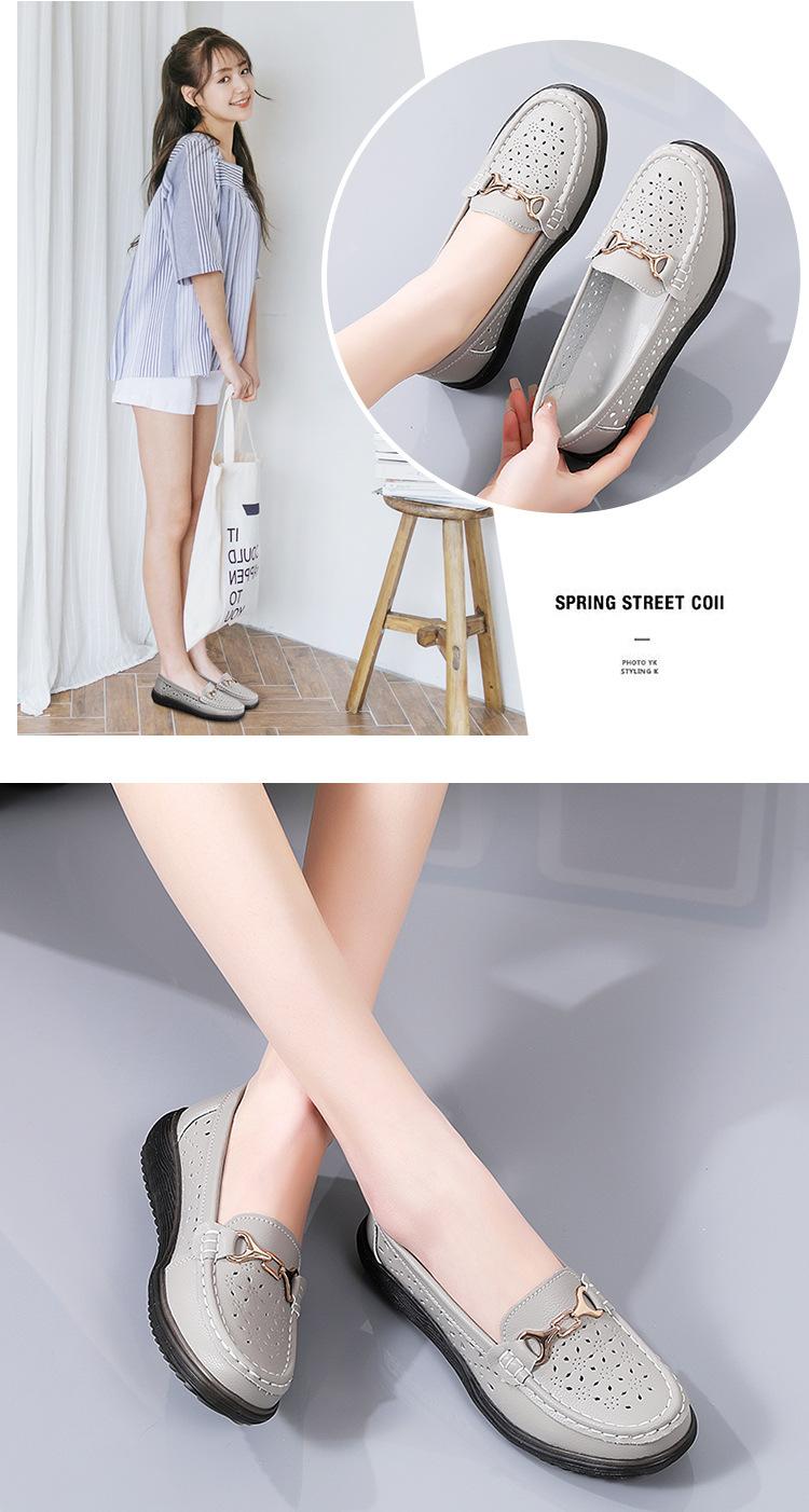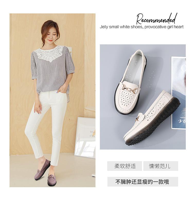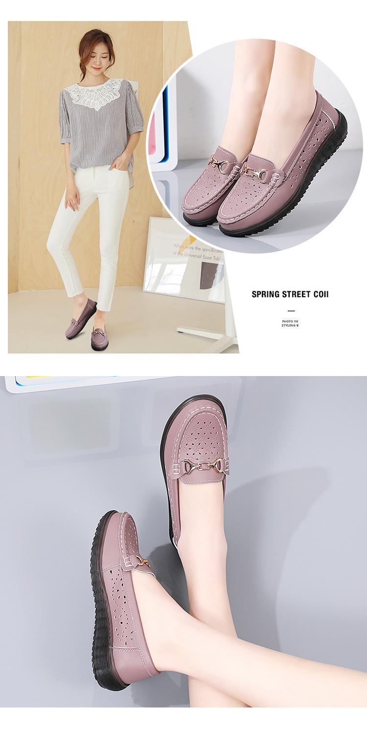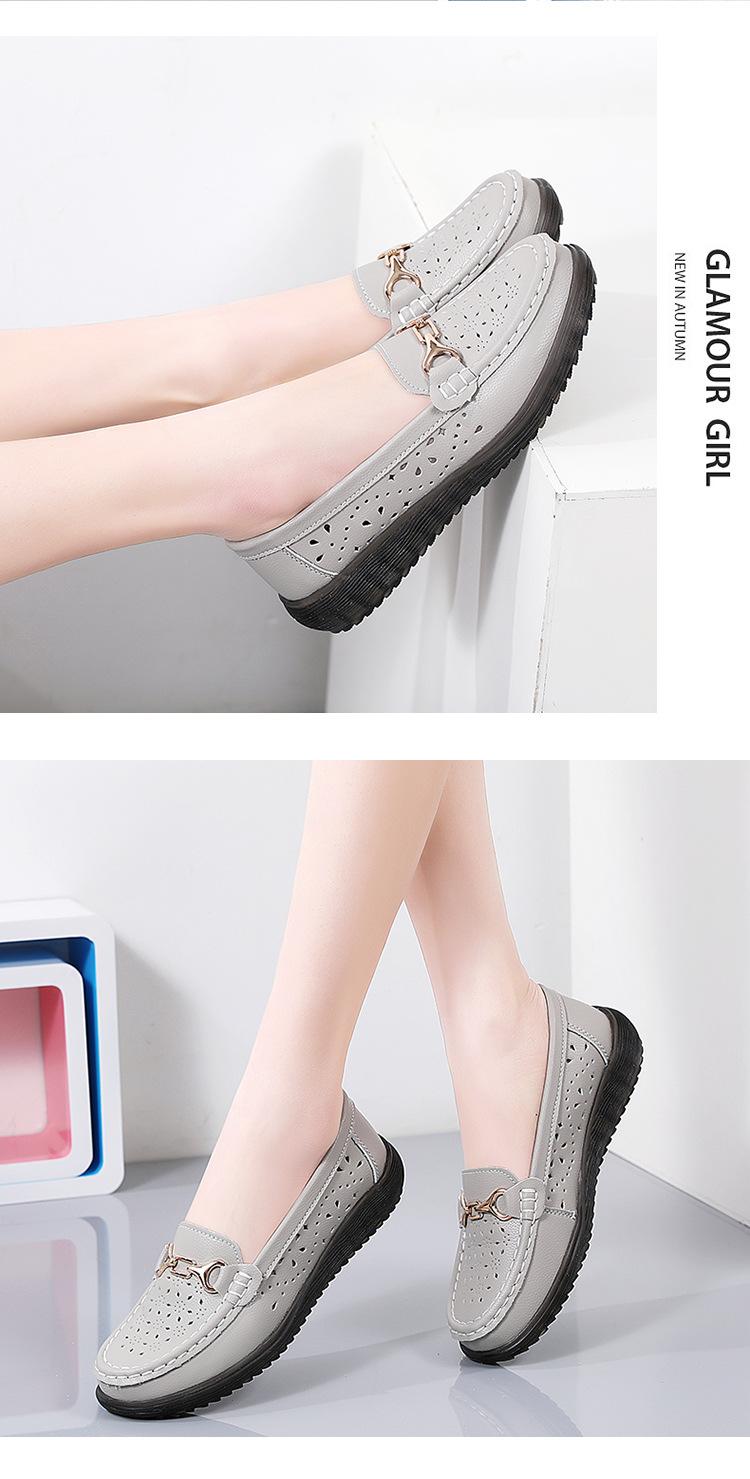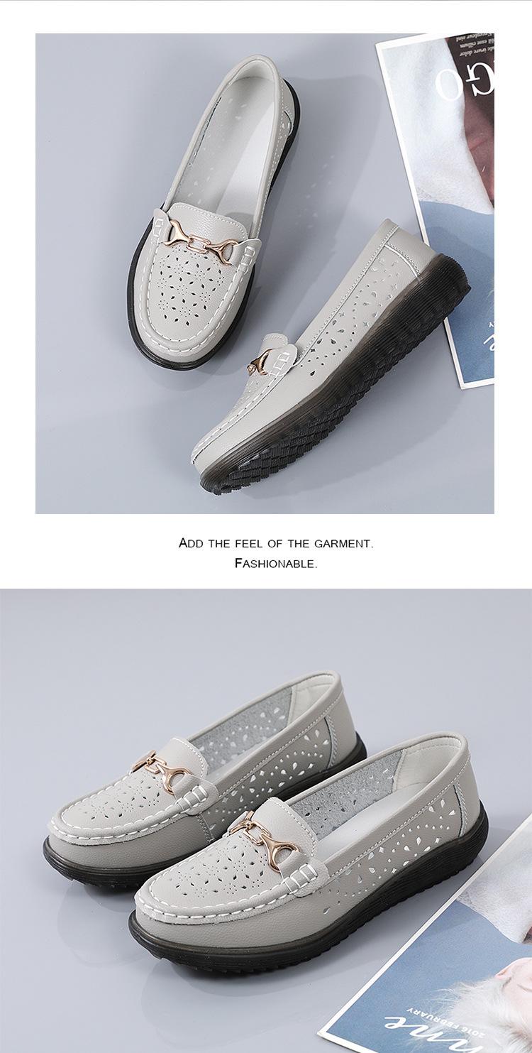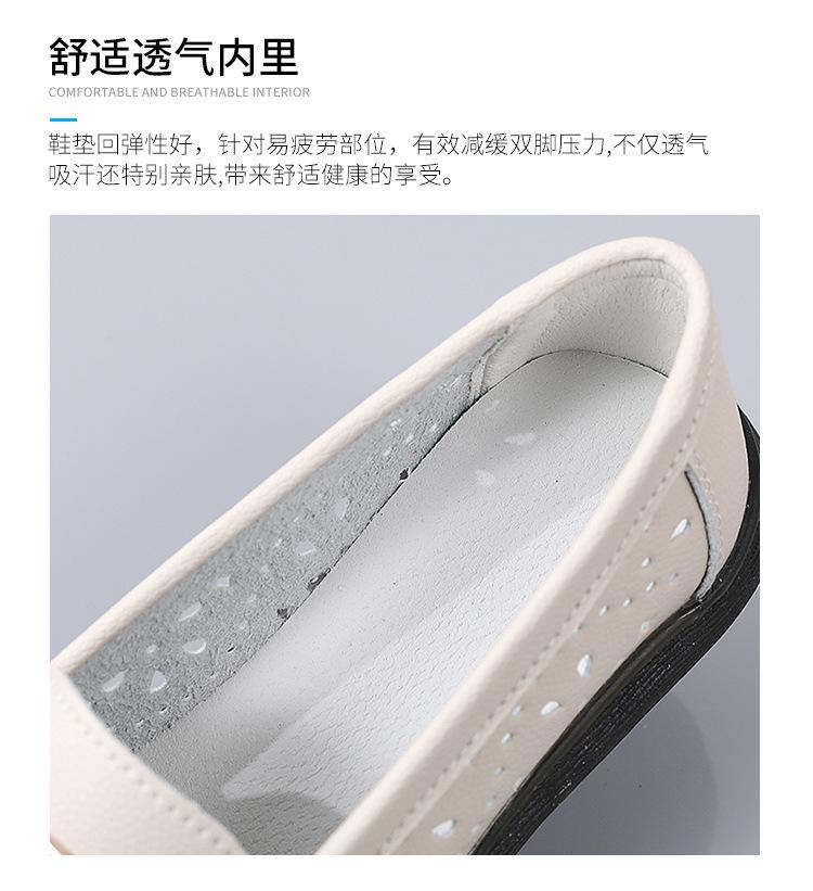 Zapatos de Madre Zapatos de Cuero Zapatos de Verano Zapatos de Suela Suave Zapatos Cómodos de Mujer de Mediana Edad Zapatos de Verano Huecos Transpirables