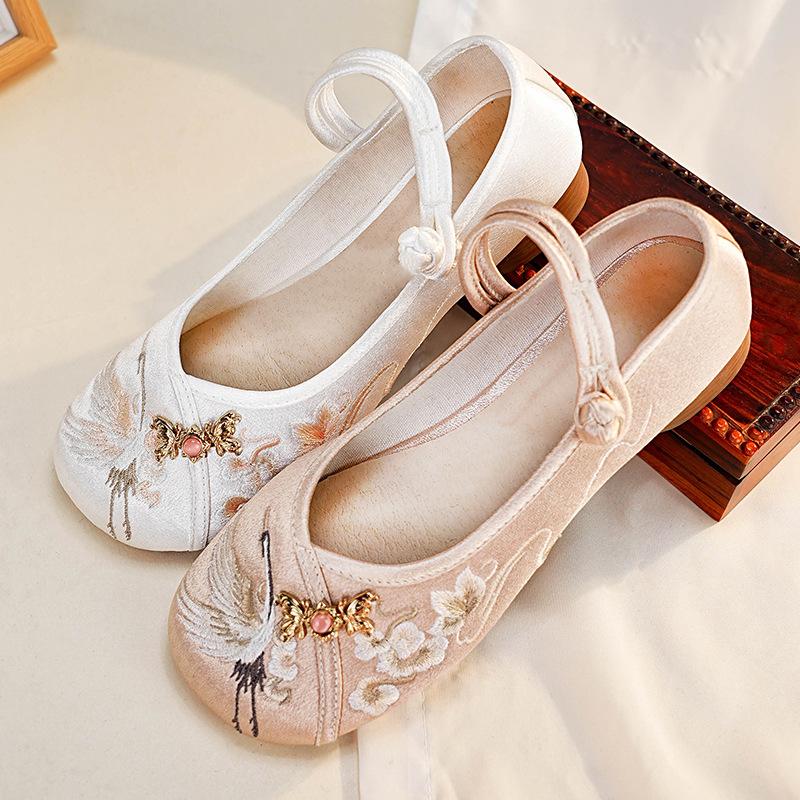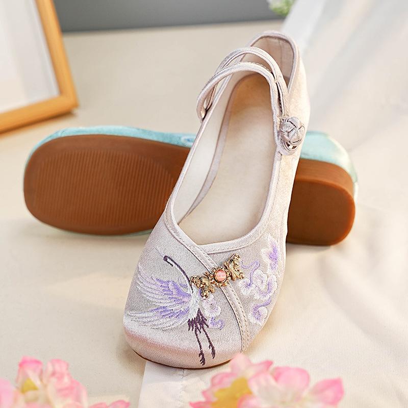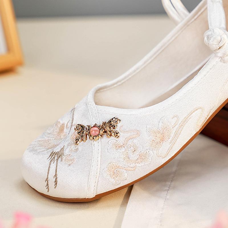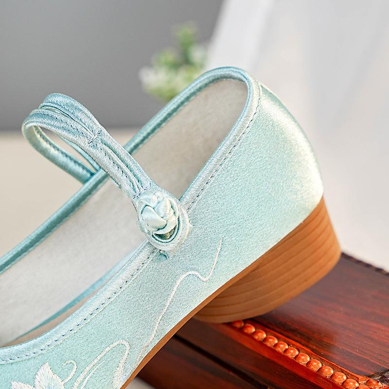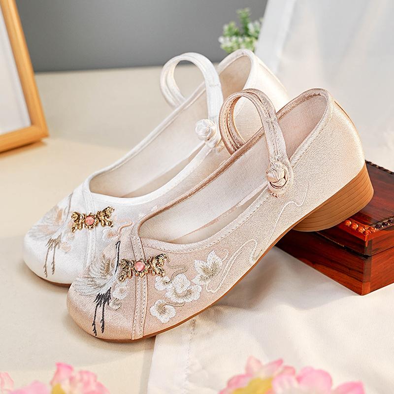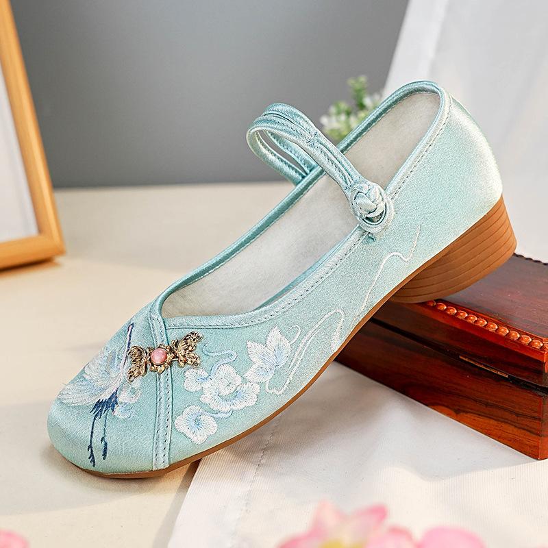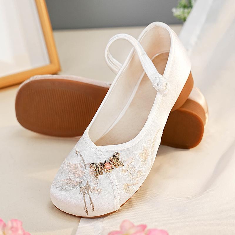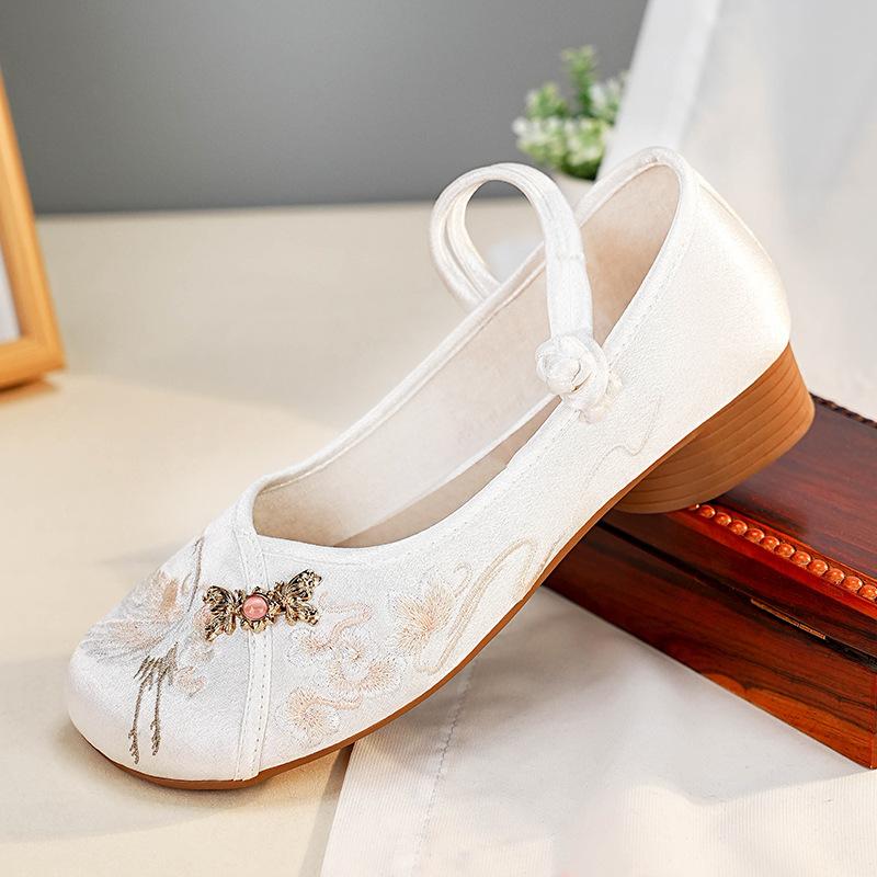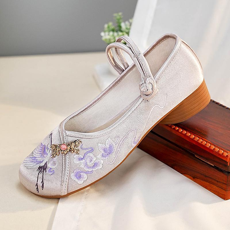 Nuevo Estilo Chino Estilo Nacional Nuevos Zapatos Bordados del Viejo Beijing Tacón Medio con Sentido del Diseño Cheongsam Moda Punta Redonda Zapatos Bordados para Mujer