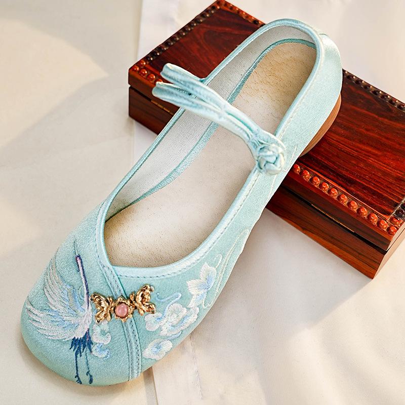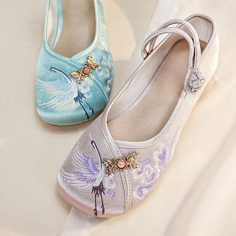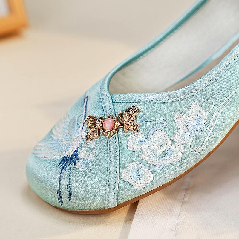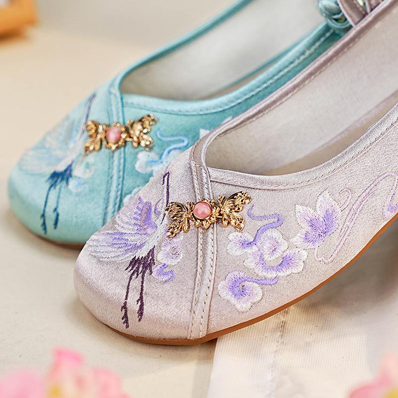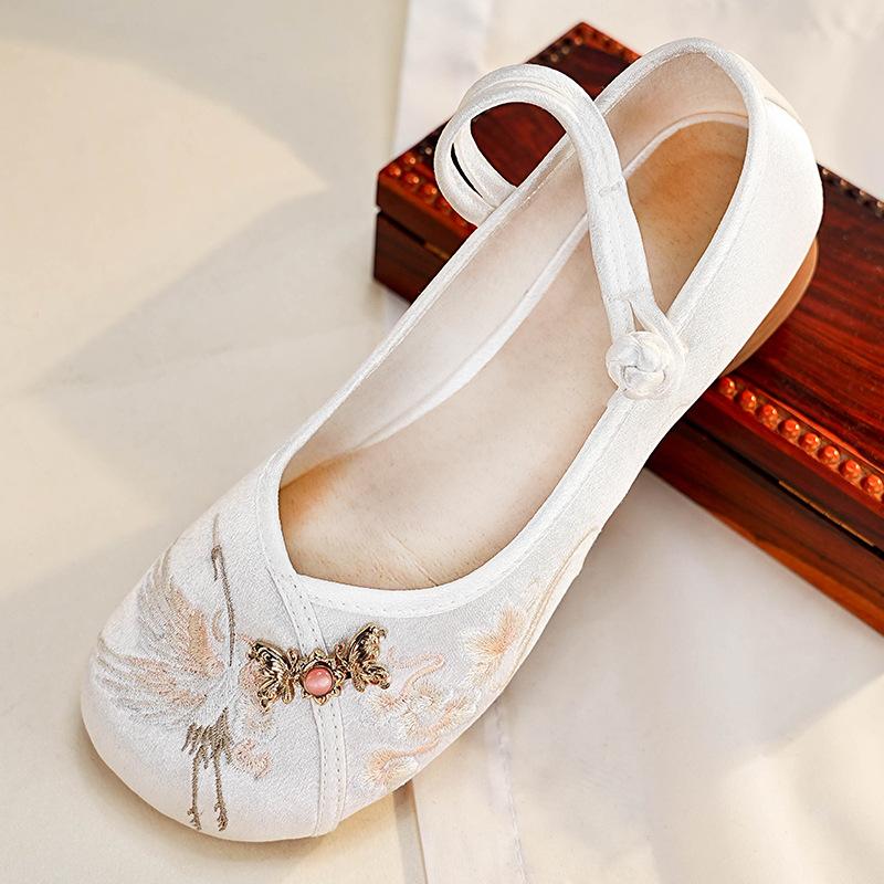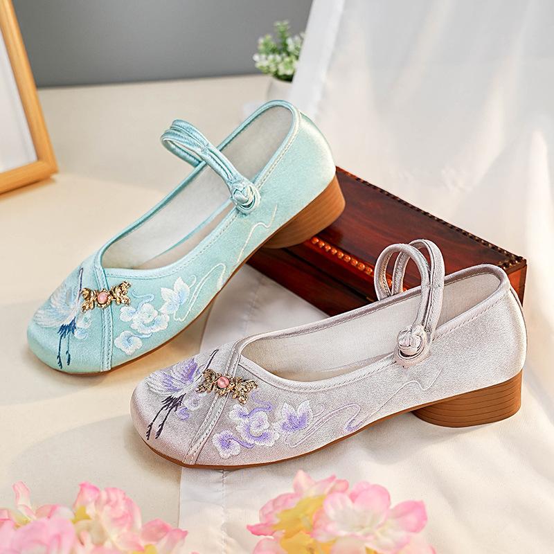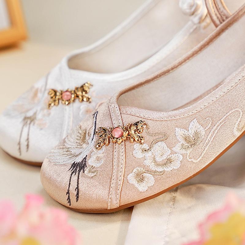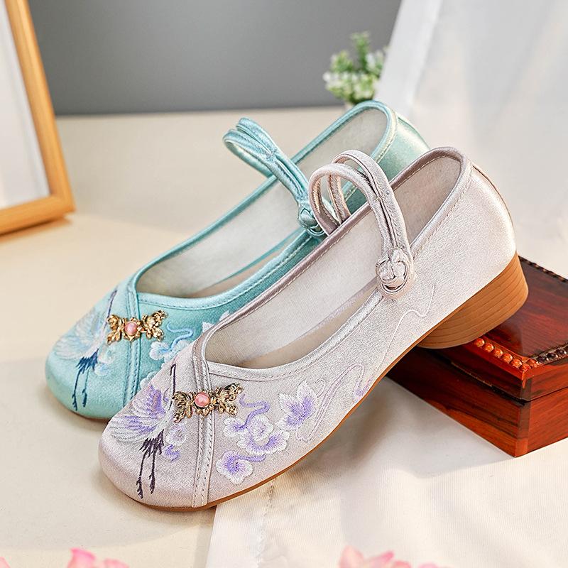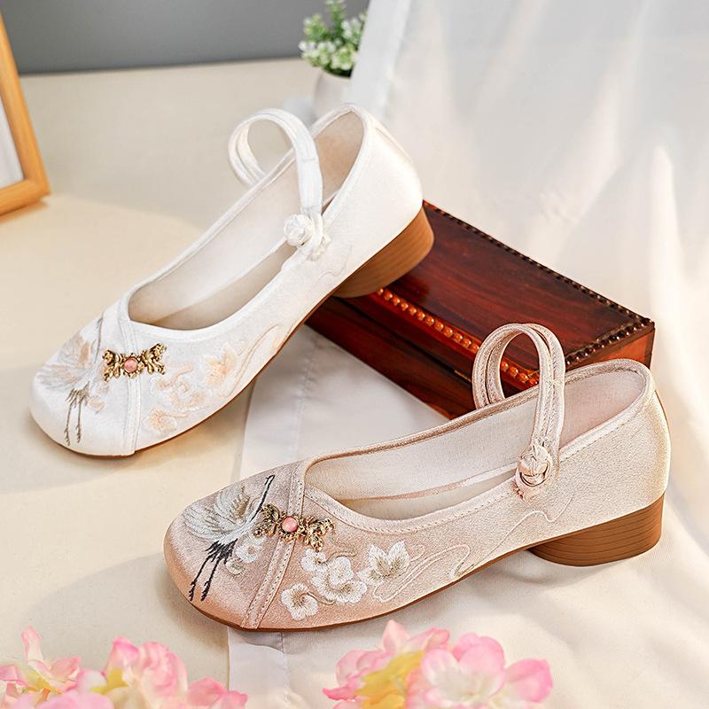 Nuevo Estilo Chino Estilo Nacional Nuevos Zapatos Bordados del Viejo Beijing Tacón Medio con Sentido del Diseño Cheongsam Moda Punta Redonda Zapatos Bordados para Mujer