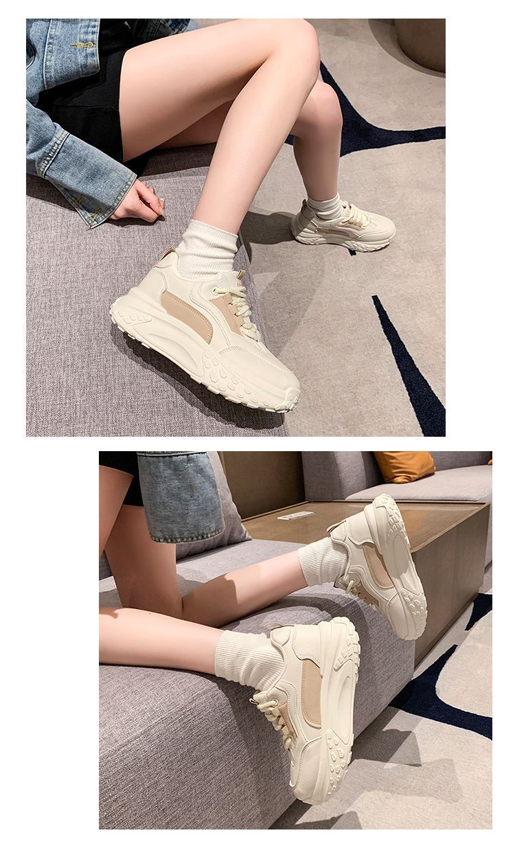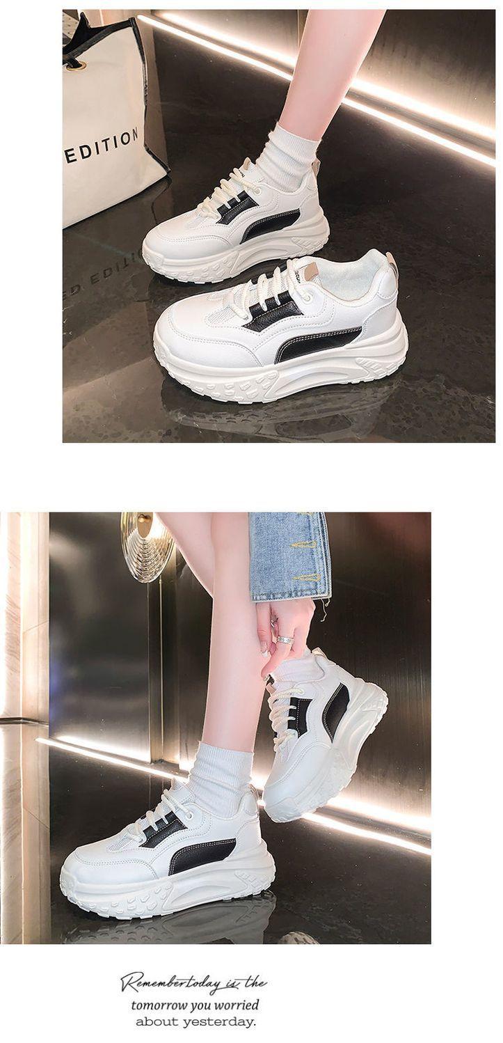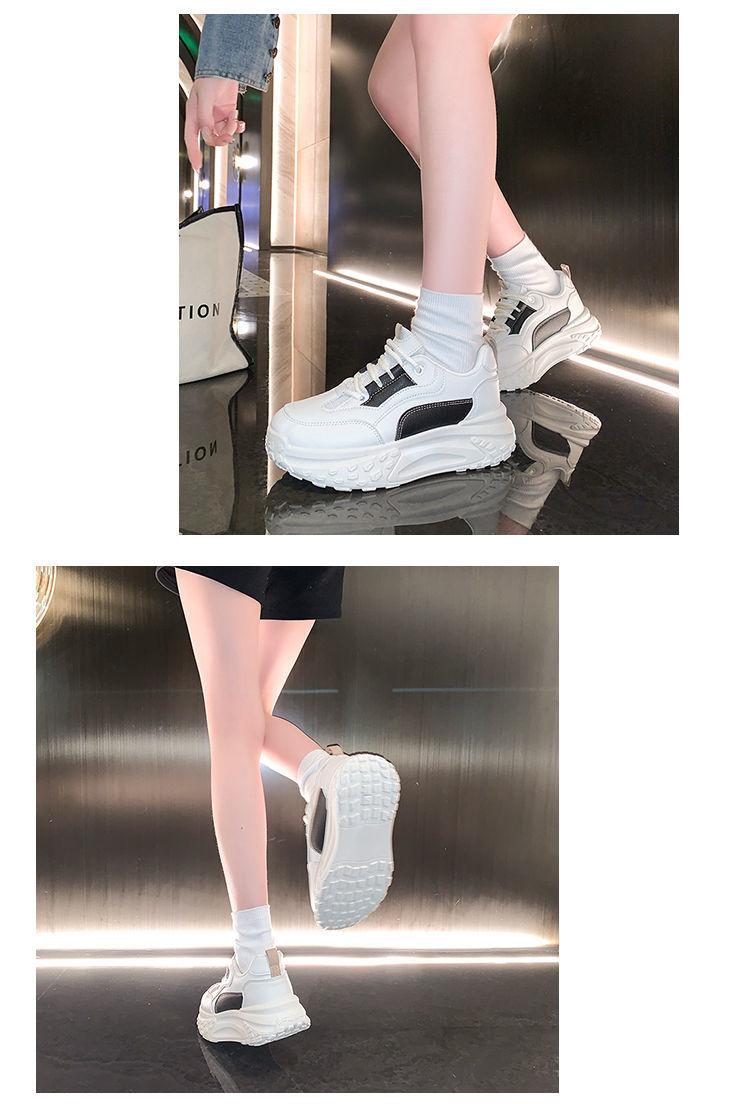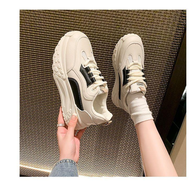Zapatos deportivos casuales populares para mujer, primavera 2024, nuevos zapatos de suela gruesa, zapatos blancos de estilo coreano, zapatos para correr para estudiantes.
