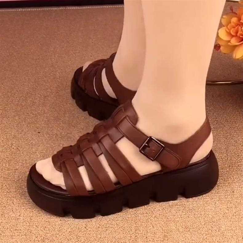 [Directo de fábrica] sandalias de piel genuina para mujer, verano, plataforma, zapatos de plataforma, verano 2023, zapatos de madre de mediana edad y anciana