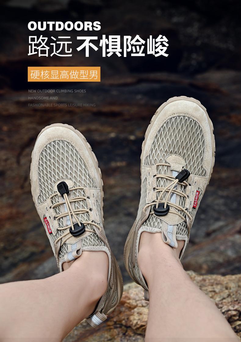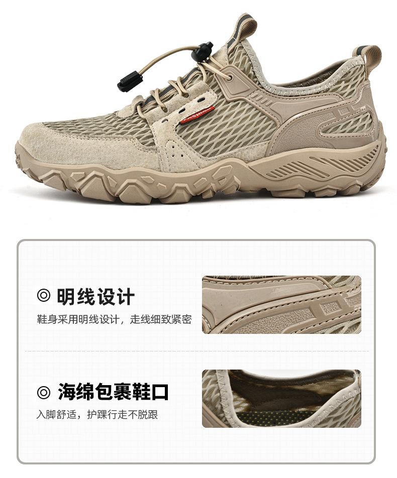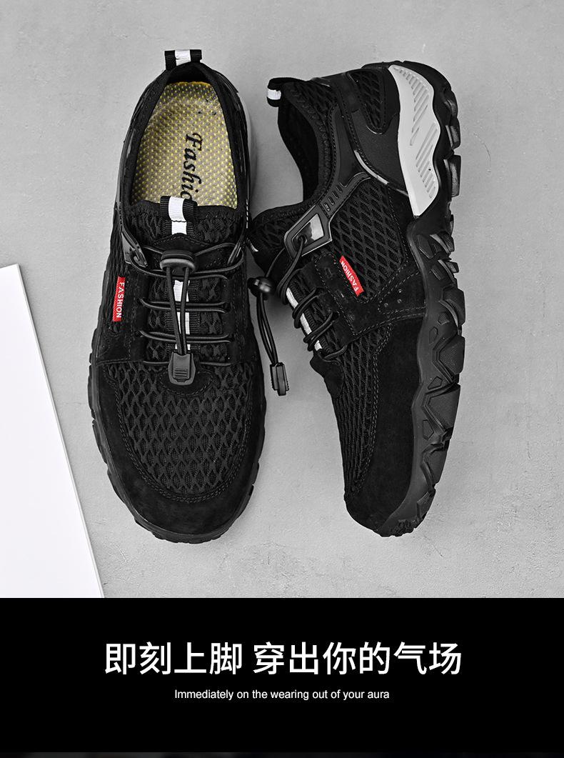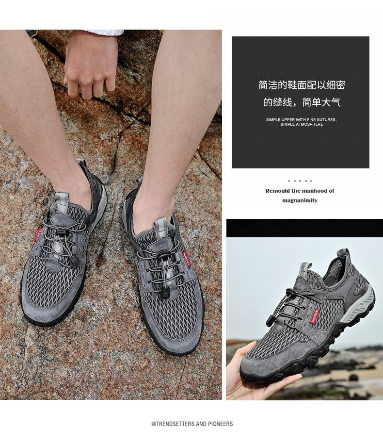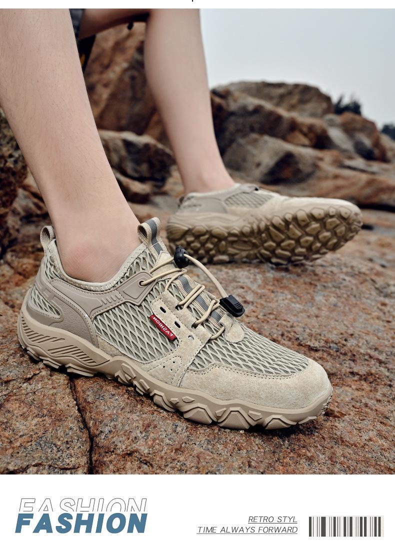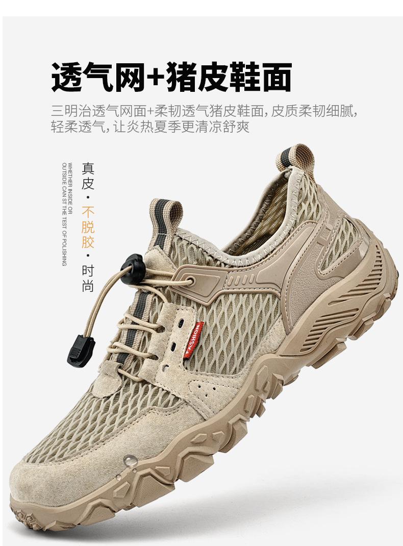 Zapatos de senderismo para hombre, de verano, de cuero genuino, transpirables, para deportes al aire libre, informales, con suela suave antideslizante y malla para los pies.