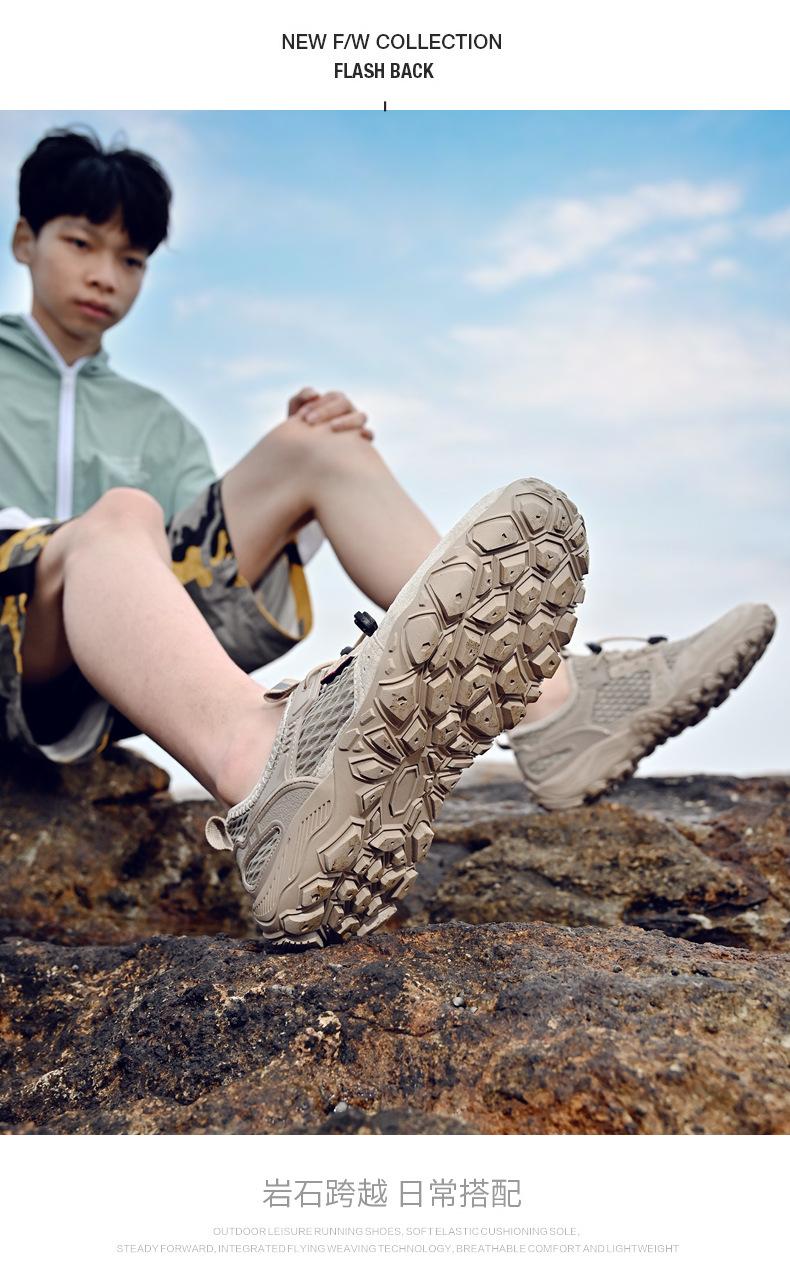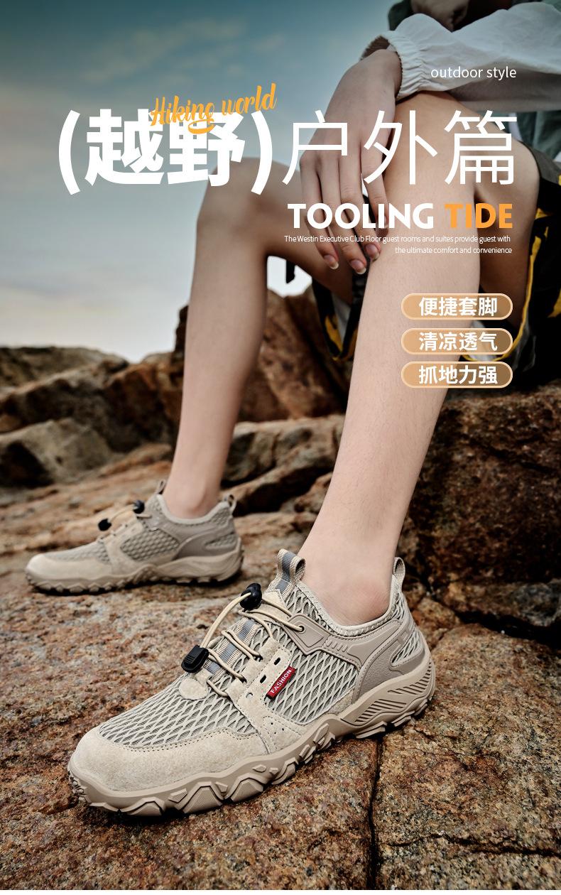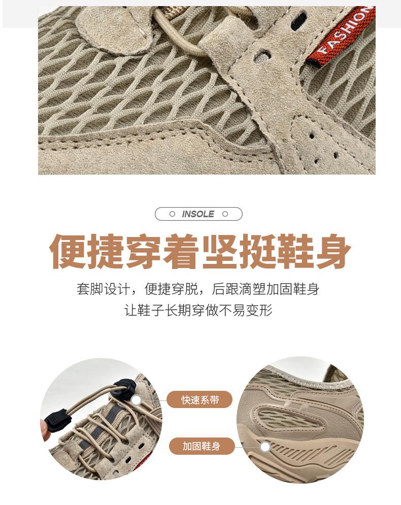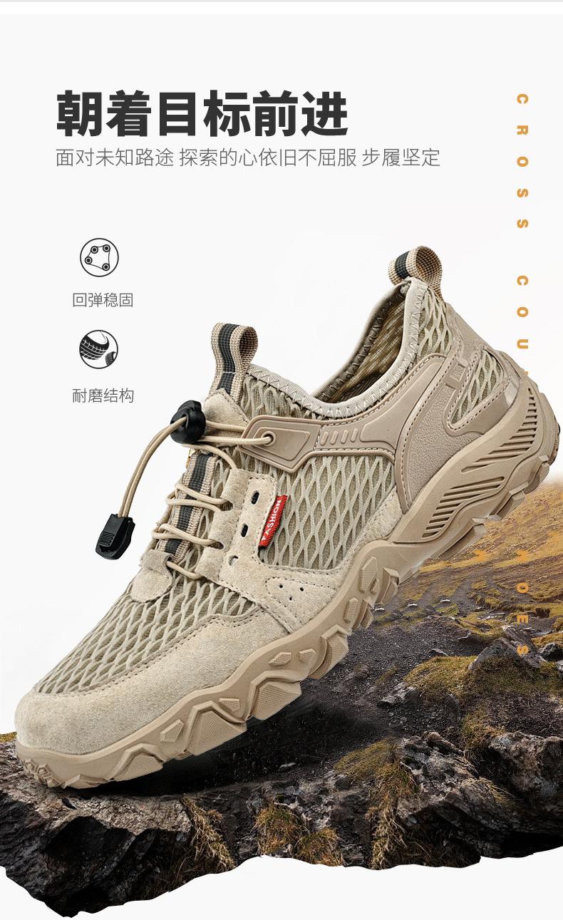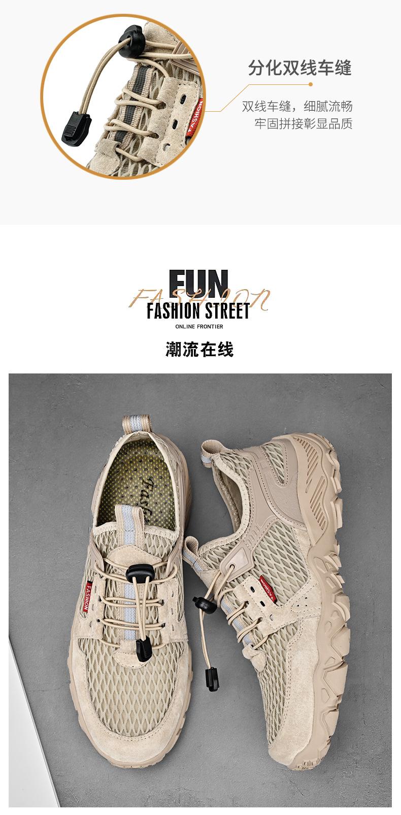 Zapatos de senderismo para hombre, de verano, de cuero genuino, transpirables, para deportes al aire libre, informales, con suela suave antideslizante y malla para los pies.