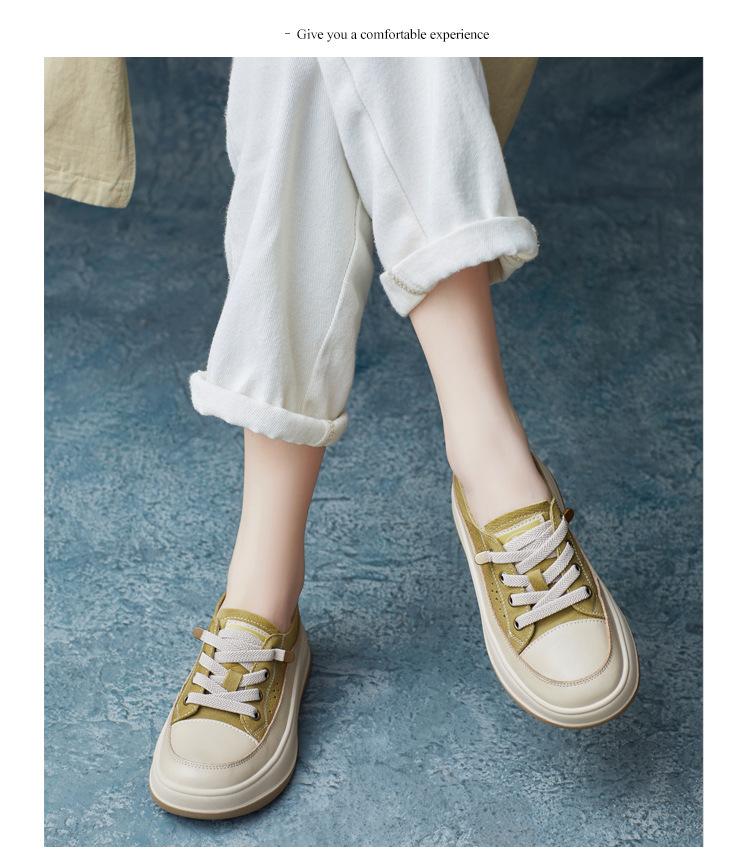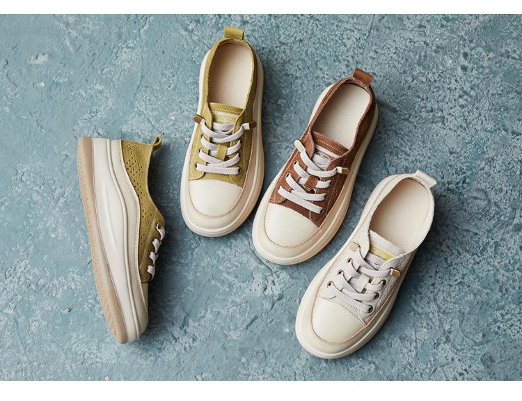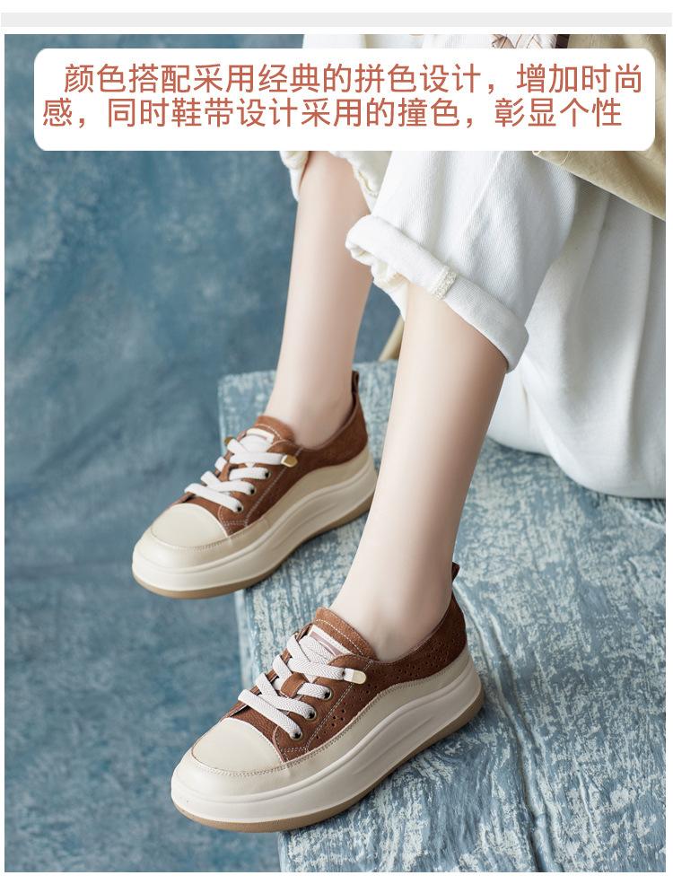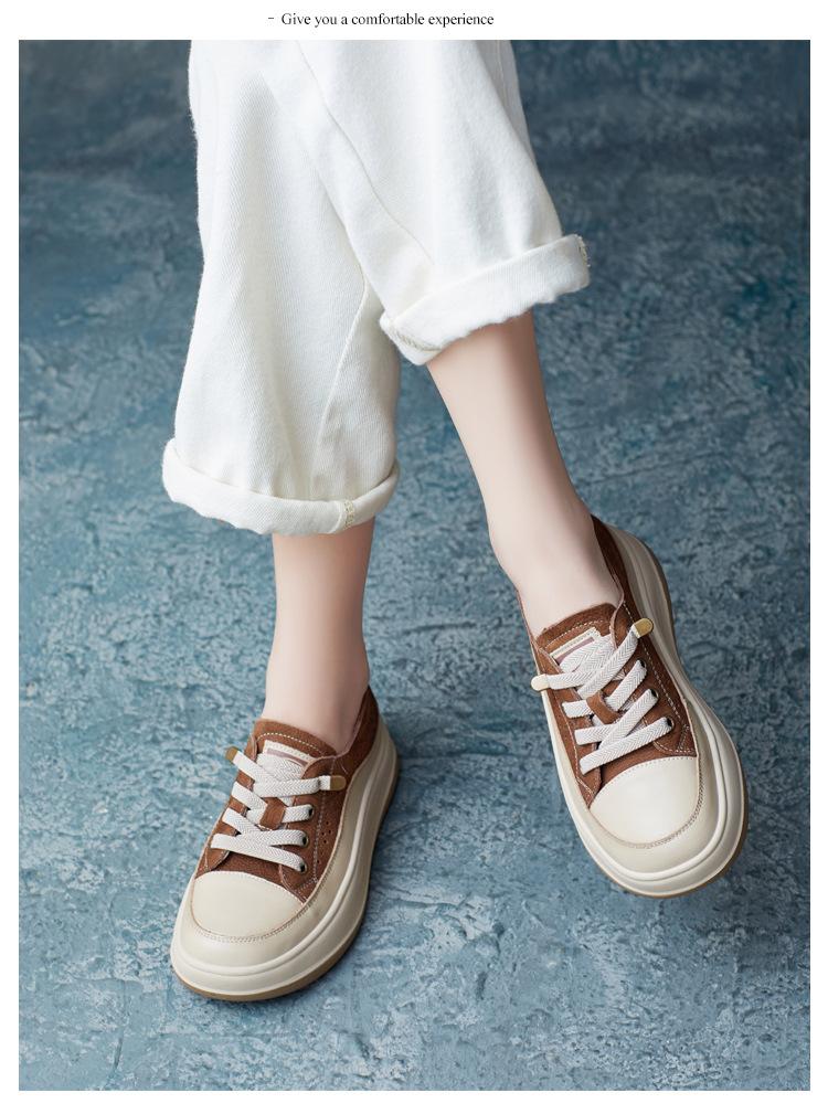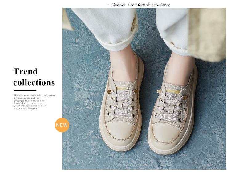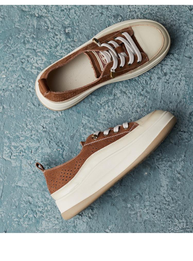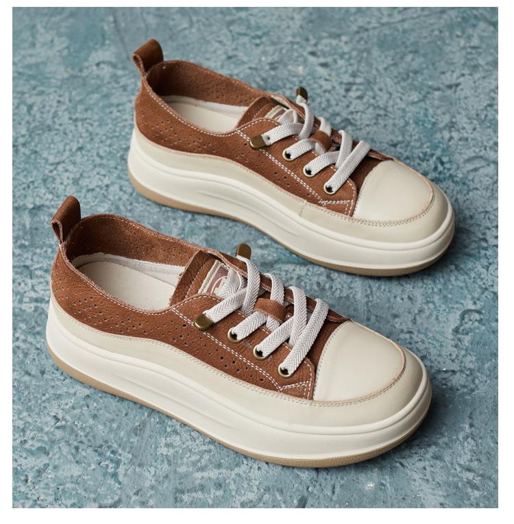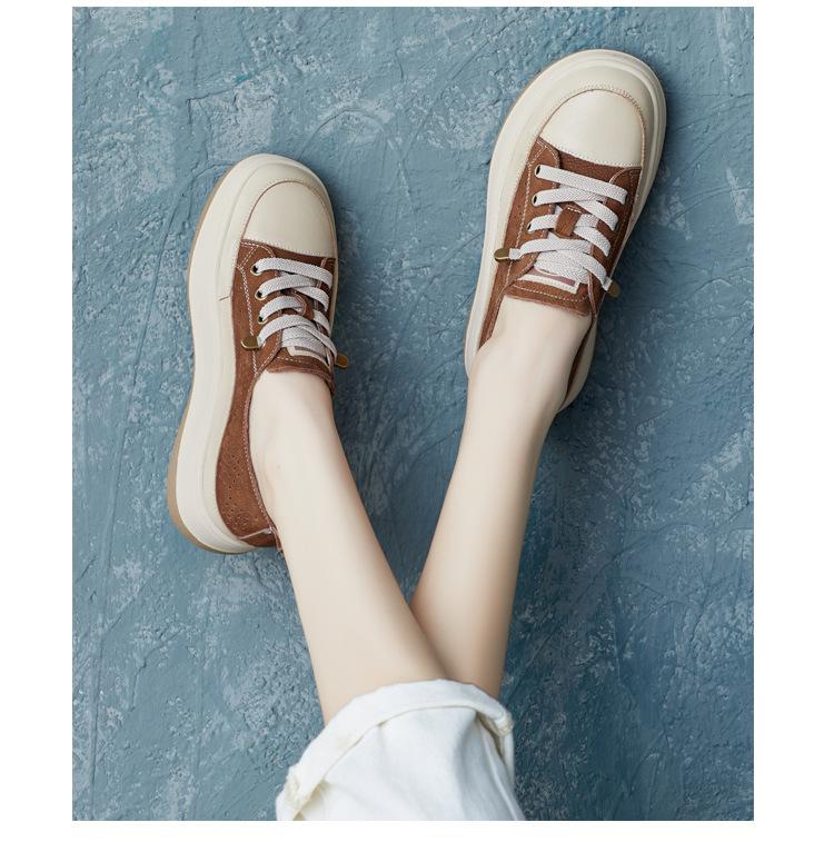 2025 Primavera Nuevo Estilo Británico Piel de Vaca Hecho a Mano Punta Redonda Perforado Cuero Suave Combinación de Colores Recortado Zapatos Planos Casuales Perezosos