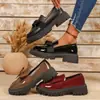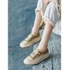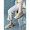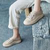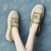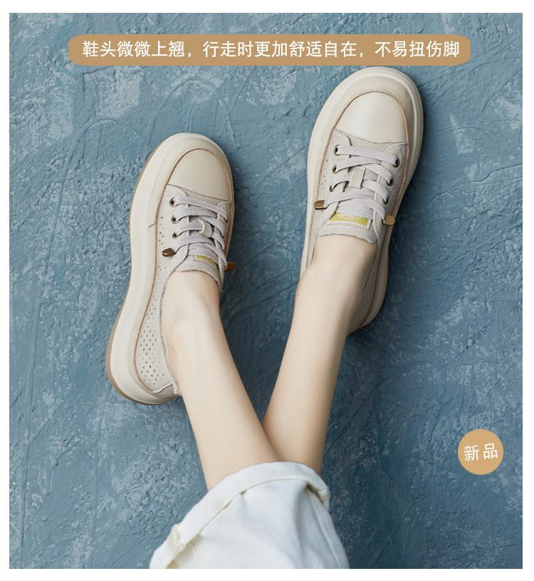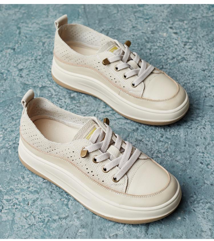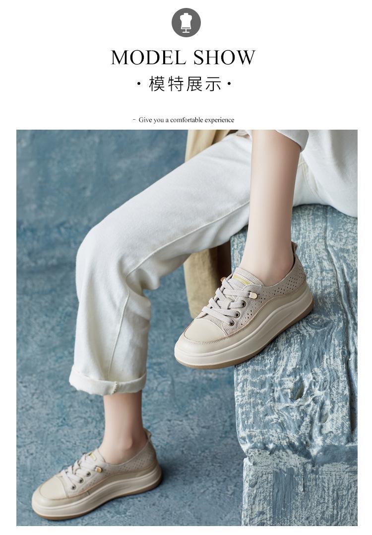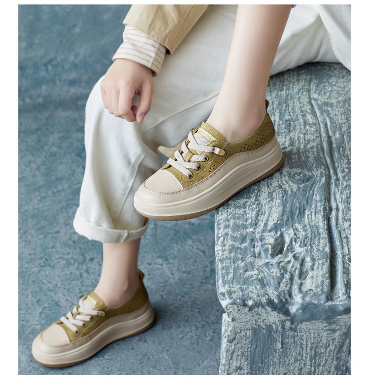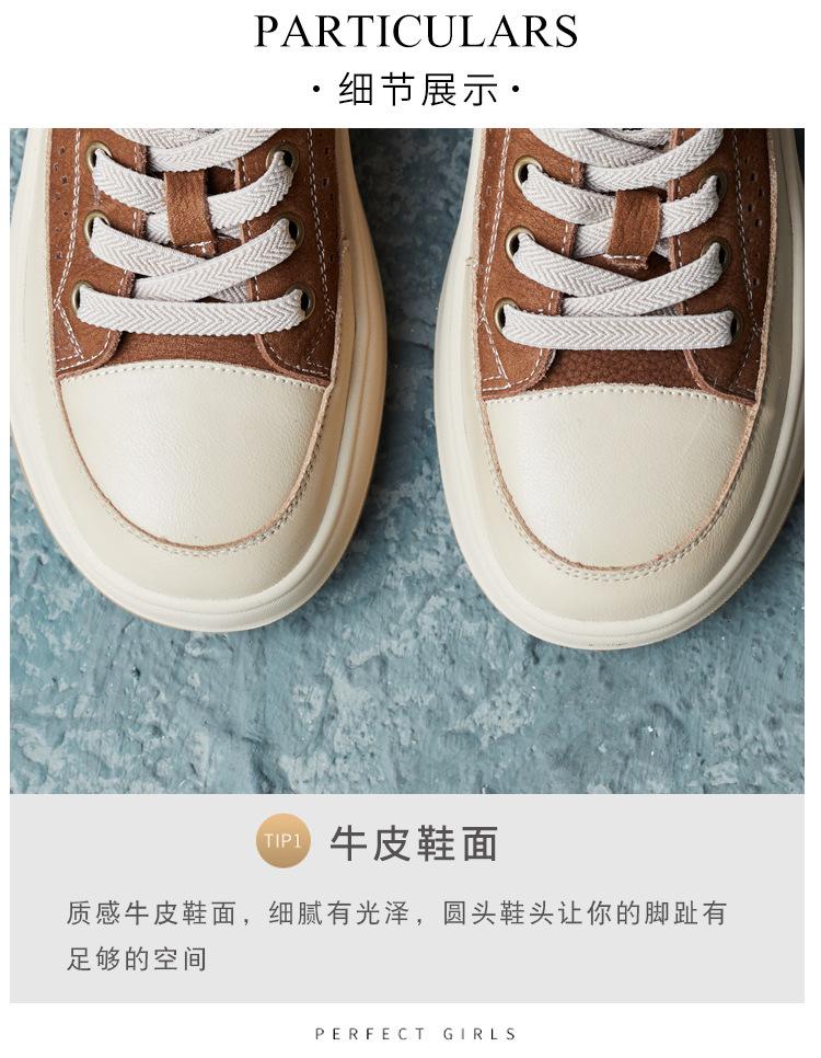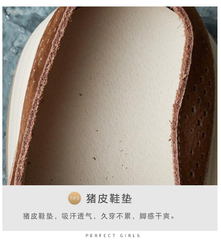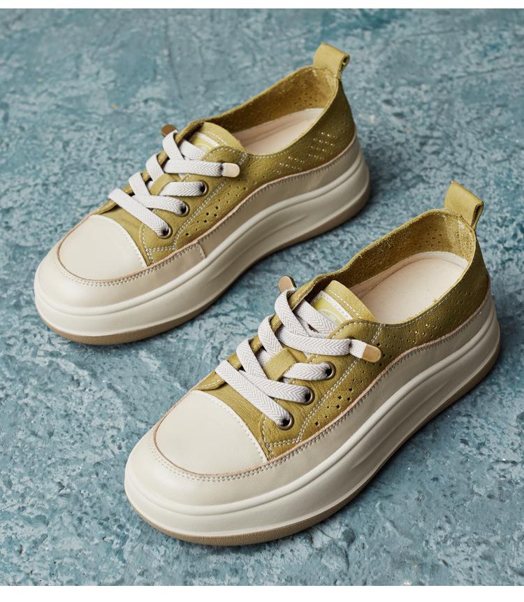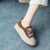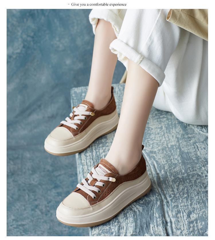 2025 Primavera Nuevo Estilo Británico Piel de Vaca Hecho a Mano Punta Redonda Perforado Cuero Suave Combinación de Colores Recortado Zapatos Planos Casuales Perezosos