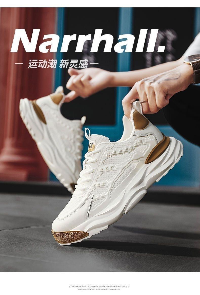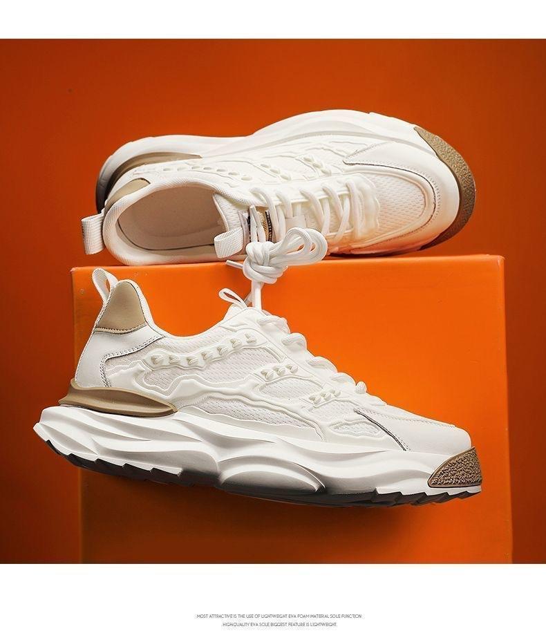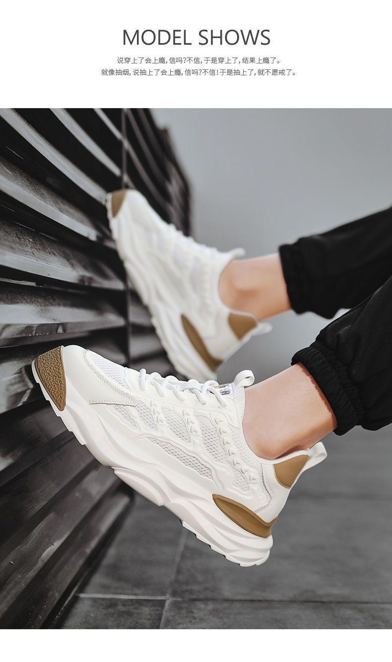Zapatos de primavera para hombre, nuevos zapatos de malla transpirable, zapatos blancos de moda para todo tipo de combinaciones, zapatillas de plataforma, zapatos casuales tipo Torre.