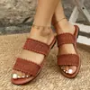 Comercio exterior transfronterizo talla grande zapatillas planas de una línea para mujer estilo étnico famoso tejidas punta cuadrada sandalias de playa zapatillas