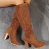 Botas de Caballero de Caña Alta de Gamuza con Tacón Grueso de Talla Grande para Comercio Exterior Europeo y Americano para Mujer, Botas de Punta con Tacón Alto Redondo hasta la Rodilla wish