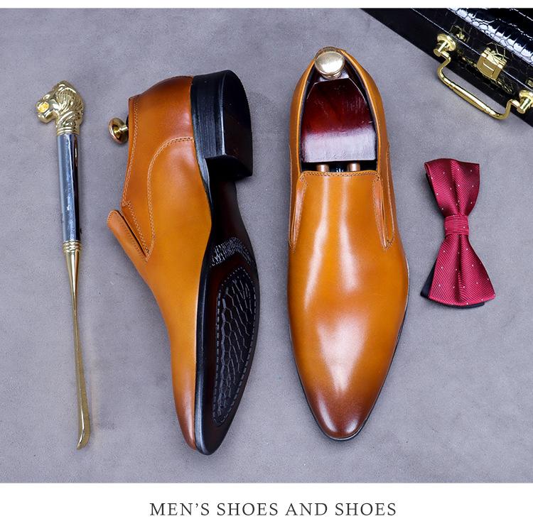 Zapatos de Piel de Vacuno de Primera Capa, Zapatos Formales de Negocios para Hombre, Zapatos de Cuero Genuino de Punta Británica, Envío Directo de Una Pieza
