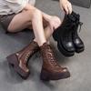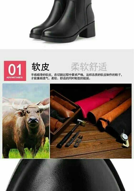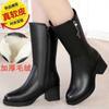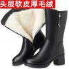 Botas gruesas antideslizantes y resistentes al desgaste con forro polar de piel de vaca de primera capa 2023, botas cálidas, botas largas de invierno para mujer, botas de algodón
