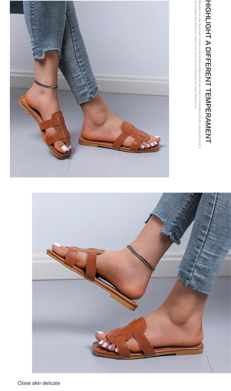 Zapatillas planas de gran tamaño de comercio exterior europeo y americano para mujer, nuevas zapatillas informales tejidas de verano para mujer