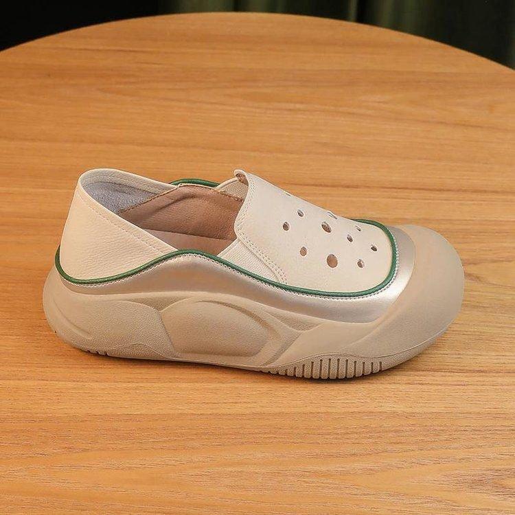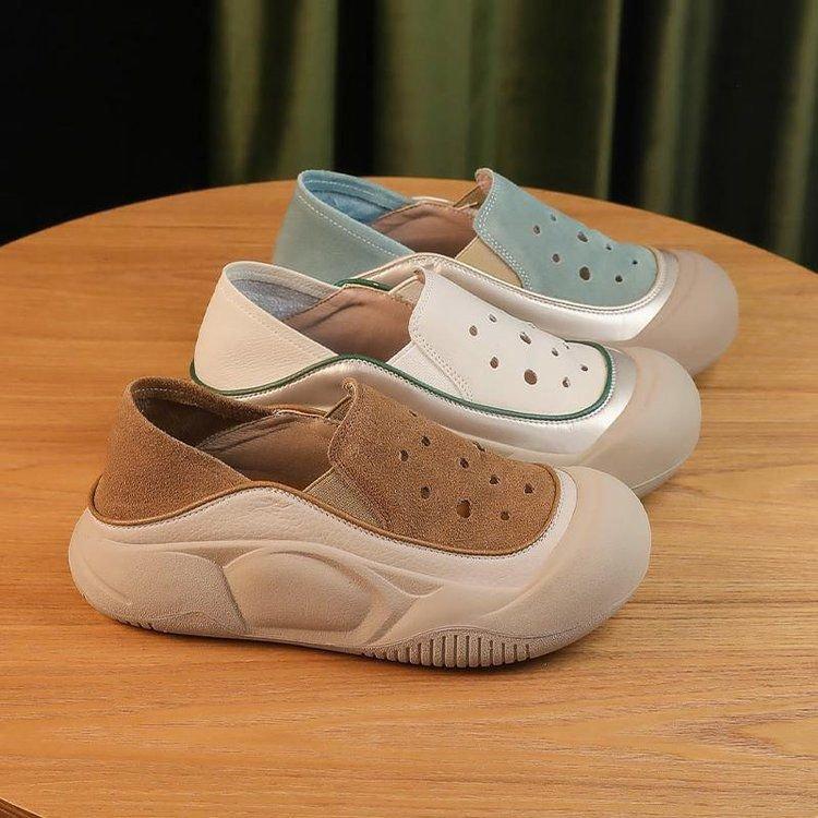Sandalias de Cuero Verano Mujer 2024 Nuevo Malla Transpirable Suela Gruesa Zapatos Cueva Slip-in Suave Suela Zapatos de Madre