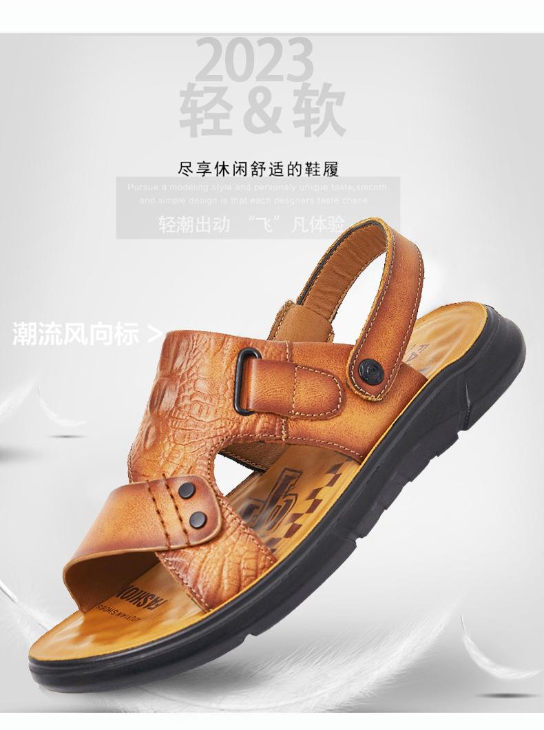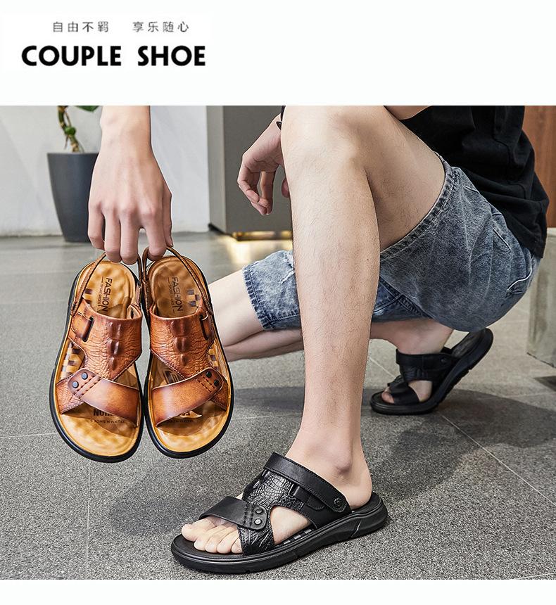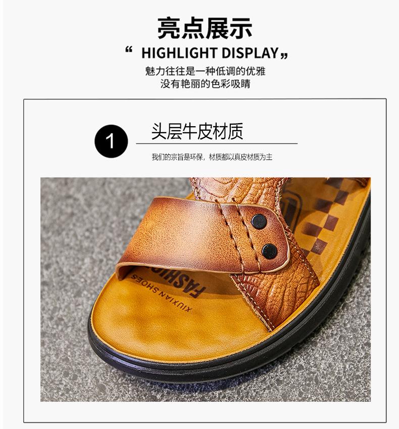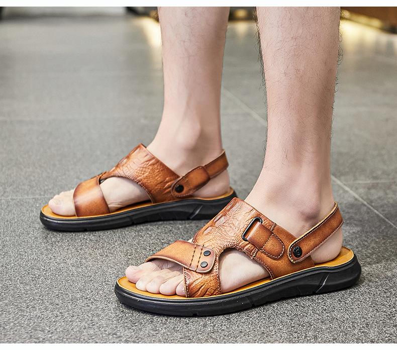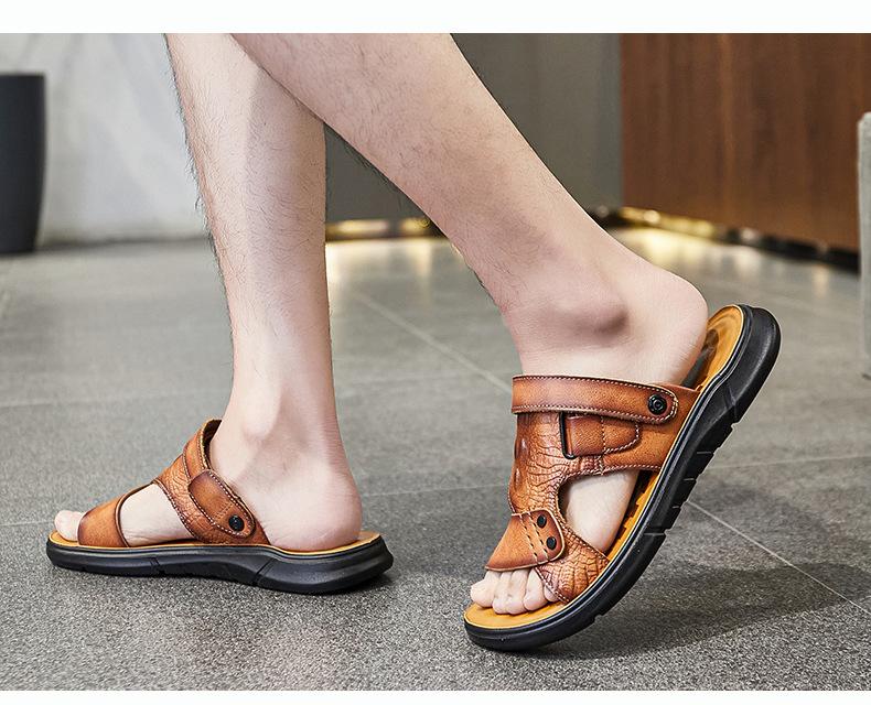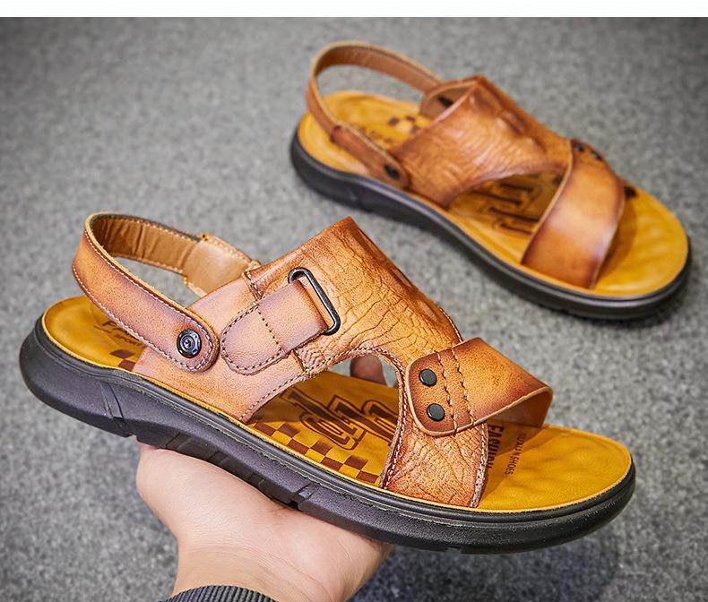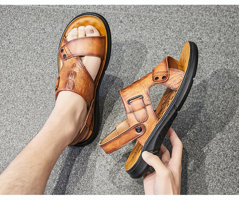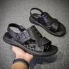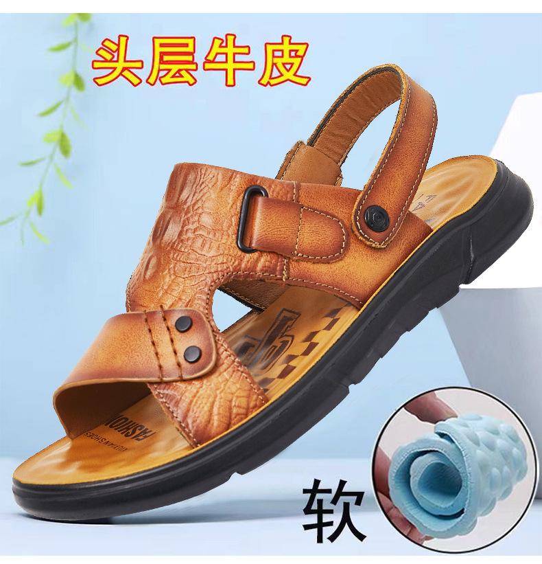 Sandalias de Verano para Hombre de Piel de Vacuno de Primera Capa, Zapatos Casuales de Playa de Cuero Genuino, Pantuflas de Cuero para Papá para Hombre, Sandalias Transpirables, Zapatos para Hombre Suaves