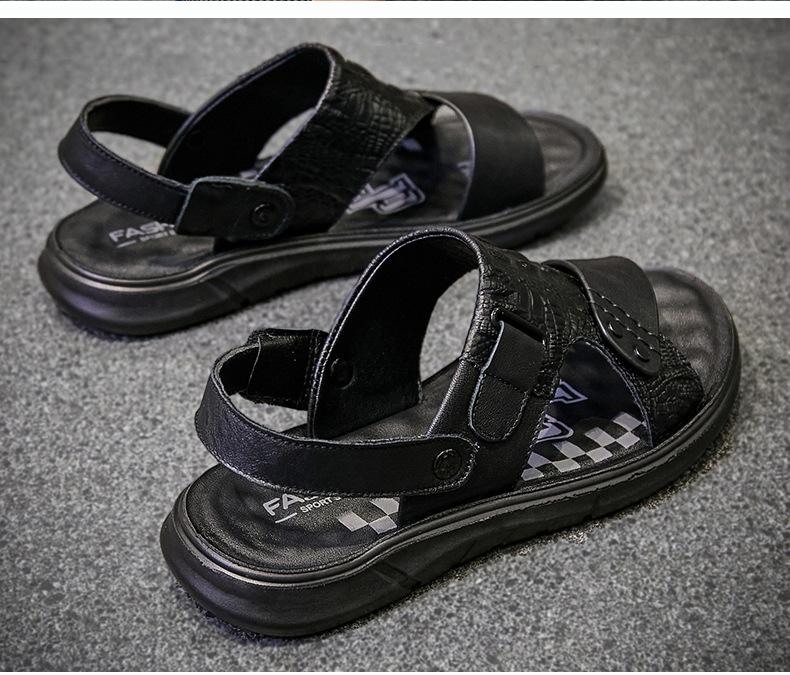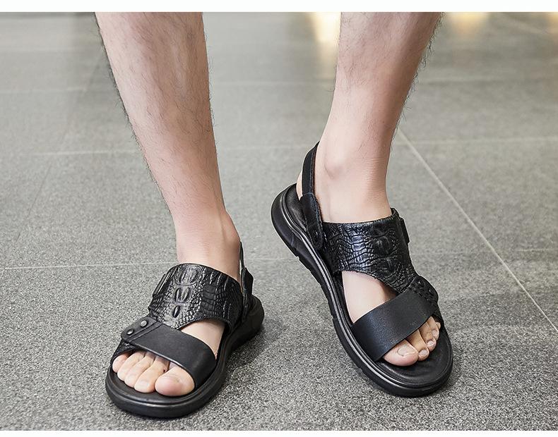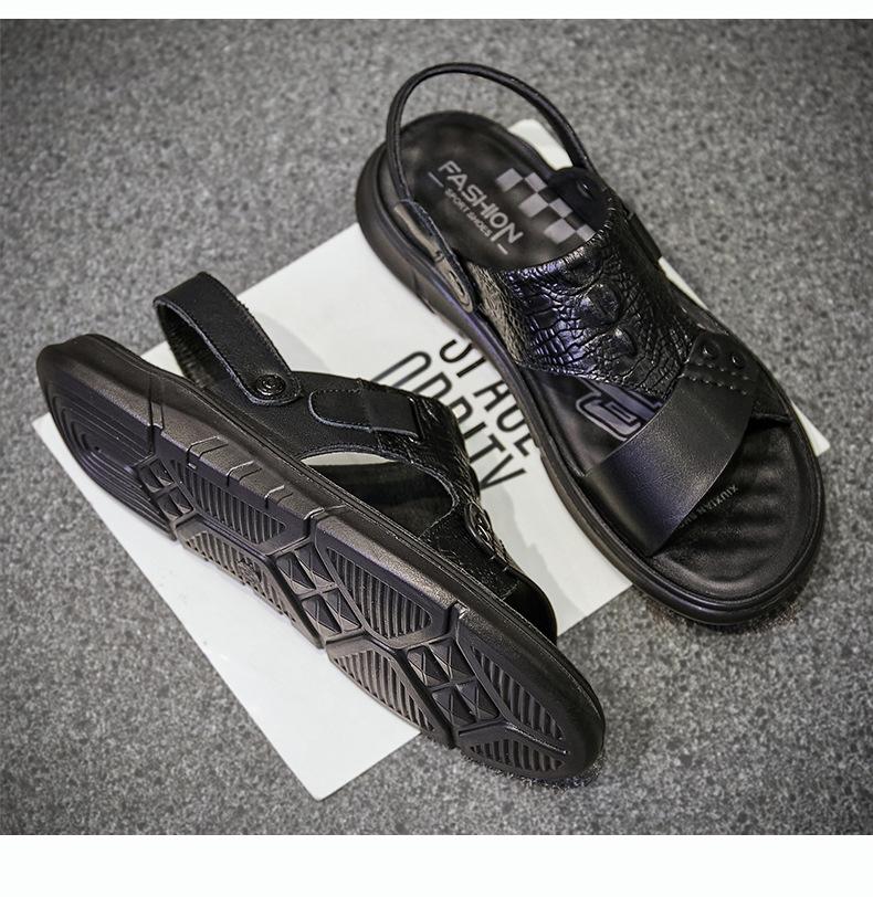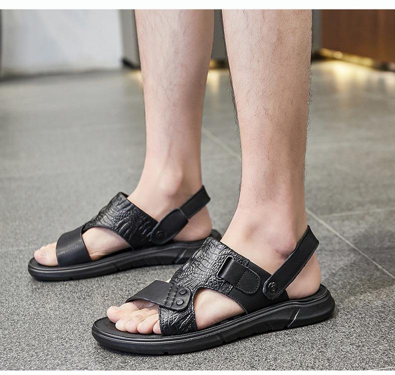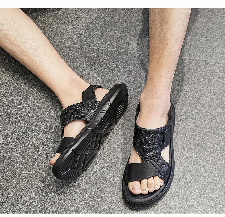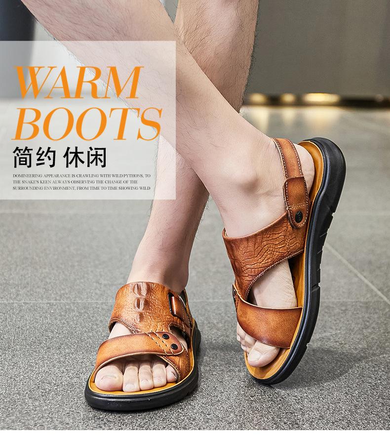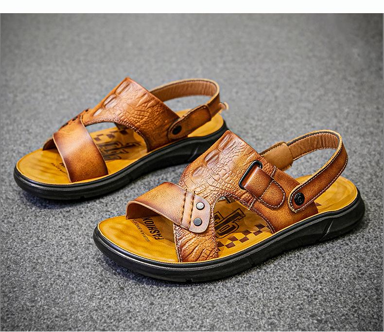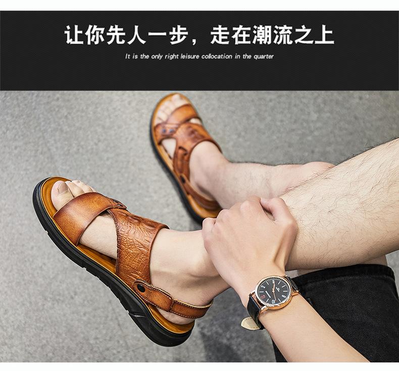 Sandalias de Verano para Hombre de Piel de Vacuno de Primera Capa, Zapatos Casuales de Playa de Cuero Genuino, Pantuflas de Cuero para Papá para Hombre, Sandalias Transpirables, Zapatos para Hombre Suaves