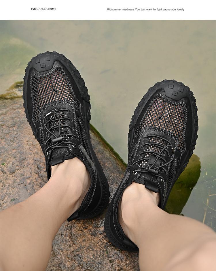 Zapatos de hombre de talla grande transfronterizos, nuevos zapatos deportivos casuales de verano a la moda para hombre, zapatos de malla transpirables, zapatos de conducción de piel de vaca para exteriores