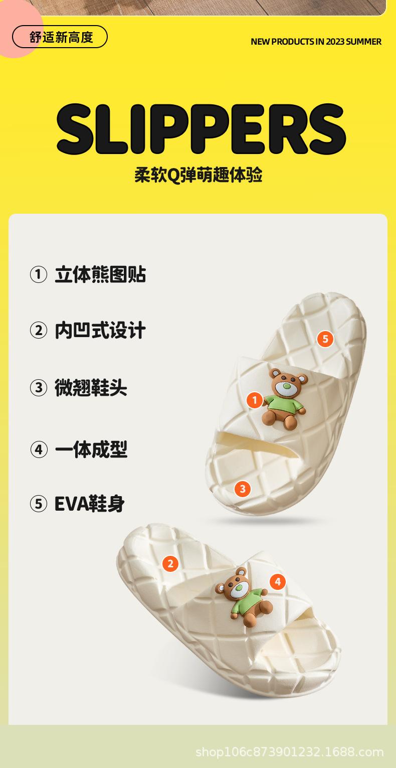 Verano Zapatillas de casa para mujer Eva oso suela gruesa suela suave para exterior interior baño antideslizantes para hombre