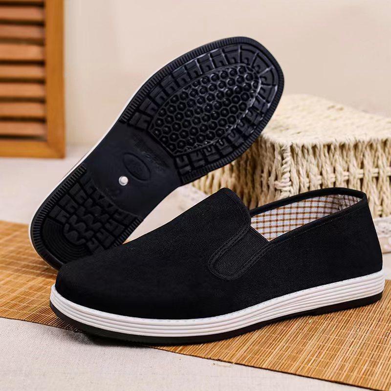 Compra Zapatos de tela para hombre 2023, antideslizantes y resistentes al desgaste, de estilo antiguo Beijing, de boca baja, sin cordones, negros, para trabajo. al por mayor en Joom.pro
