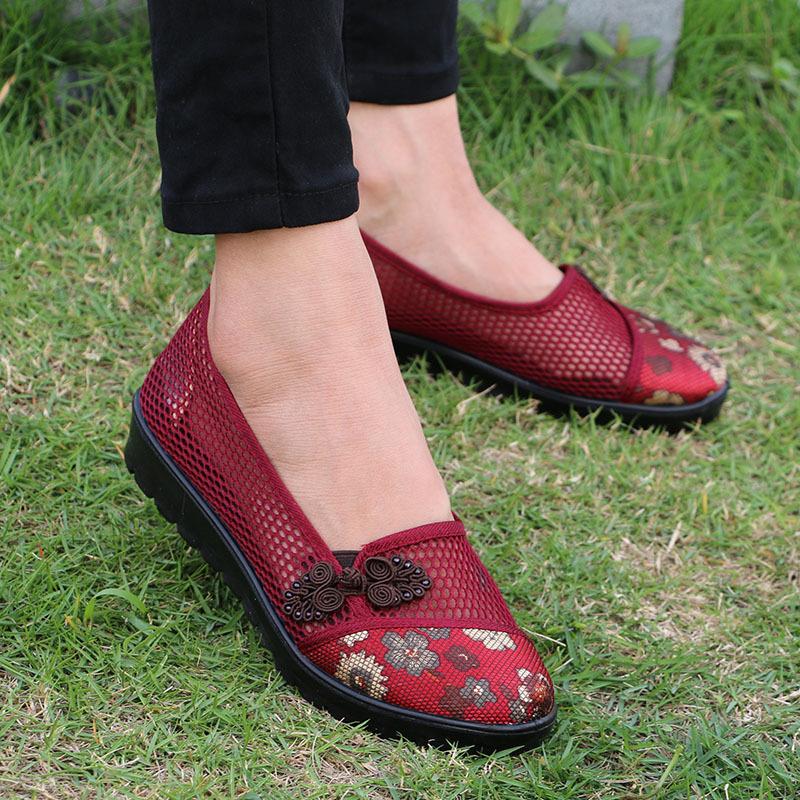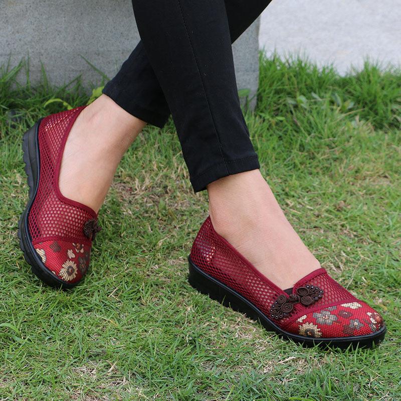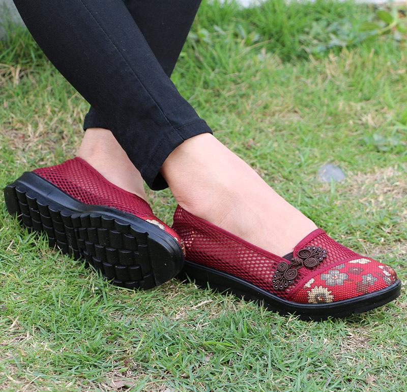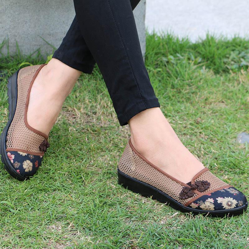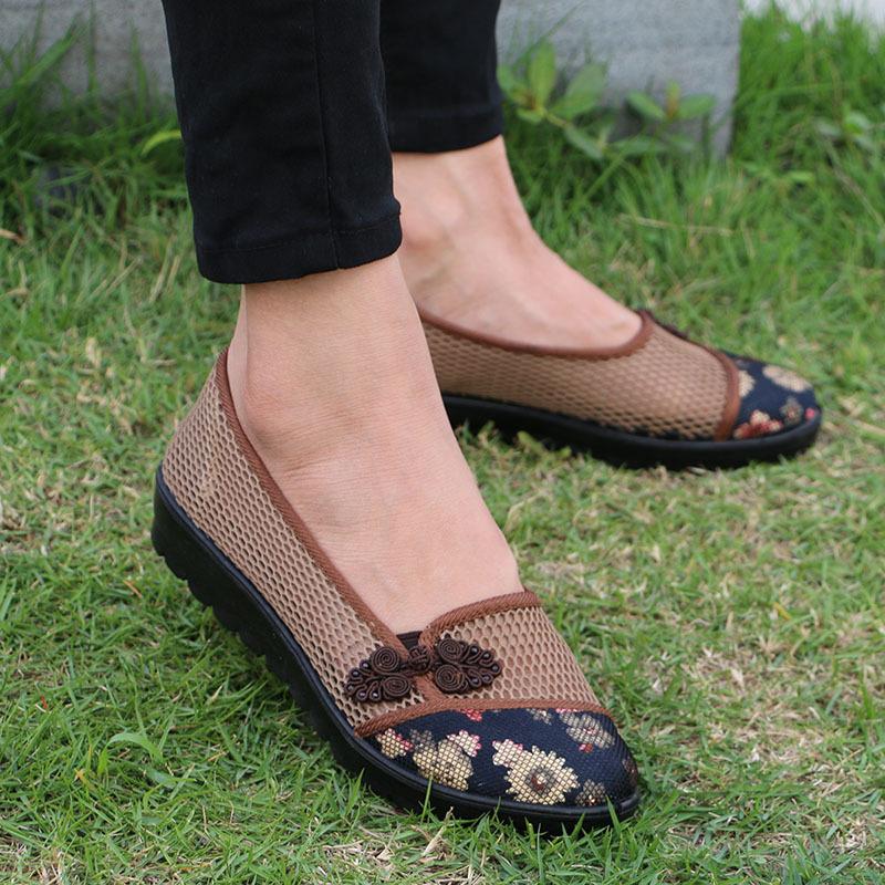 Este S101 es el calzado de tenis para mujer más nuevo de Xinqing en 2020. Toda la parte superior está hecha deBotón + algodón floral + banda elástica + forro absorbente de sudor de algodón y lino