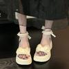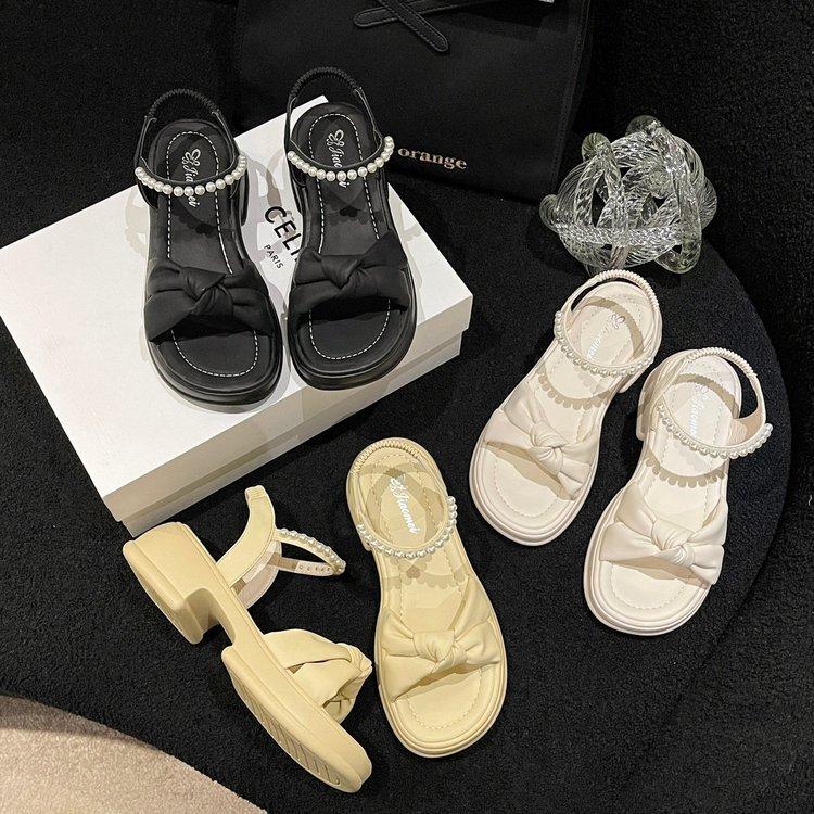 Sandalias Calientes de Mujer 2024 Verano Nuevo Suela Gruesa Estilo Hada Perla Zapatos de Playa Suela Suave Moda Zapatos Romanos Modernos