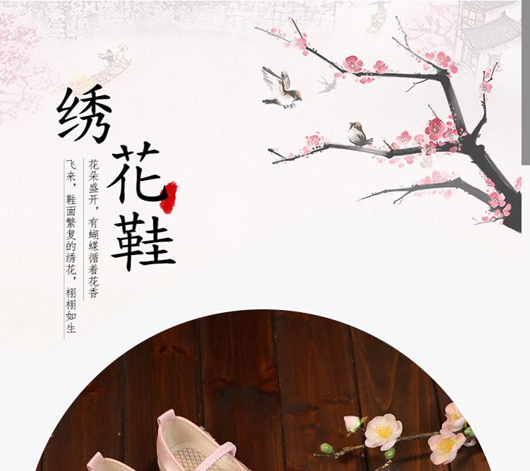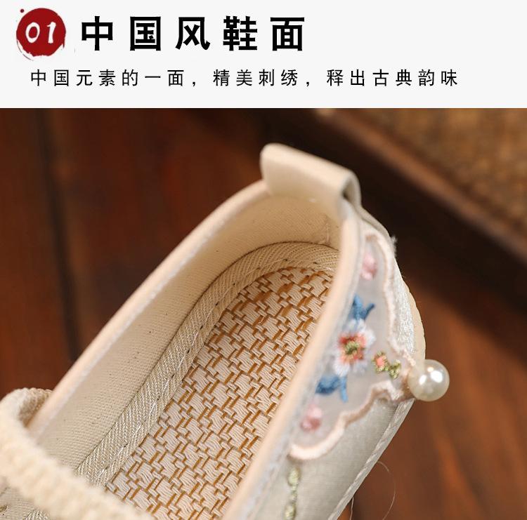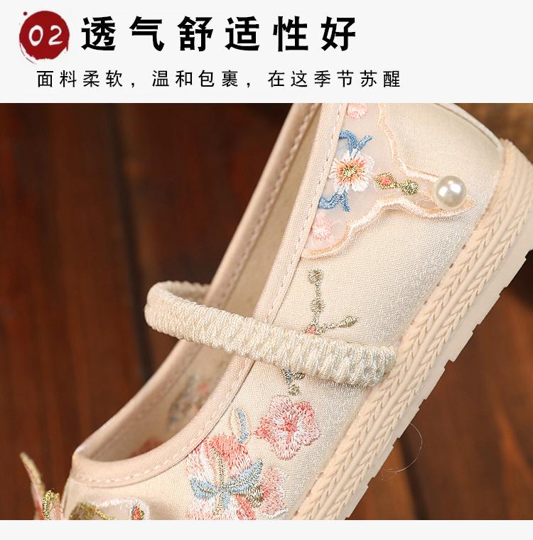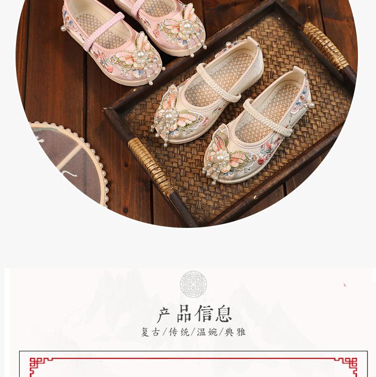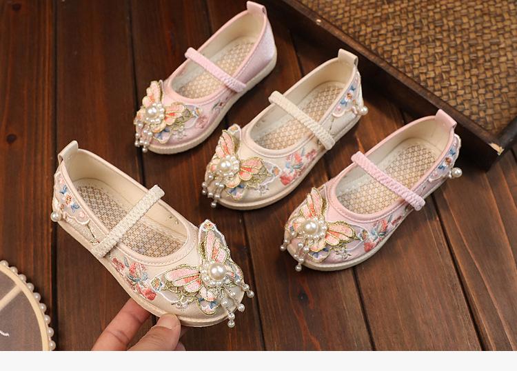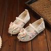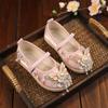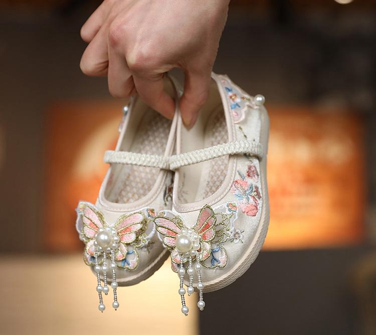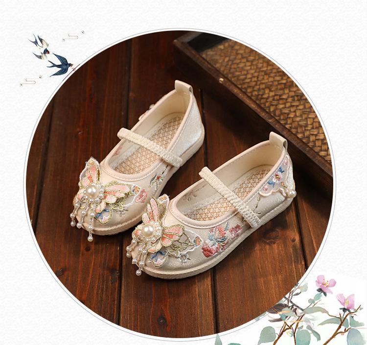 Zapatos bordados Hanfu para niñas, estilo princesa, traje antiguo, zapatos de tela antiguos de Beijing, zapatos bordados de rendimiento étnico, suela de tendón de buey, para danza infantil.