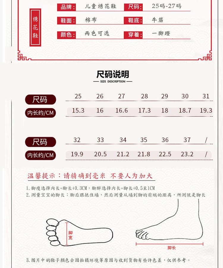 25 yards/15.3cm shoe inner length, 26 yards/16.cm shoe inner length, 27 yards/16.6cm shoe inner length, 28 yar...