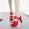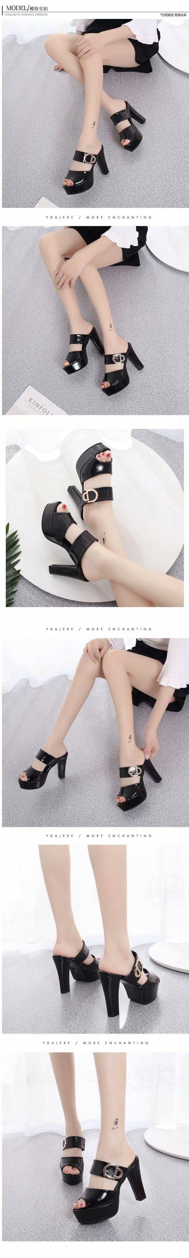 Compra Comercio Exterior 2025 Verano Nuevo Sandalias de Tacón Alto de Una Tira para Mujer con Tacones Gruesos de Boca de Pescado Moda Europea y Americana Zapatillas de Mujer de Tacón Grueso al por mayor en Joom.pro
