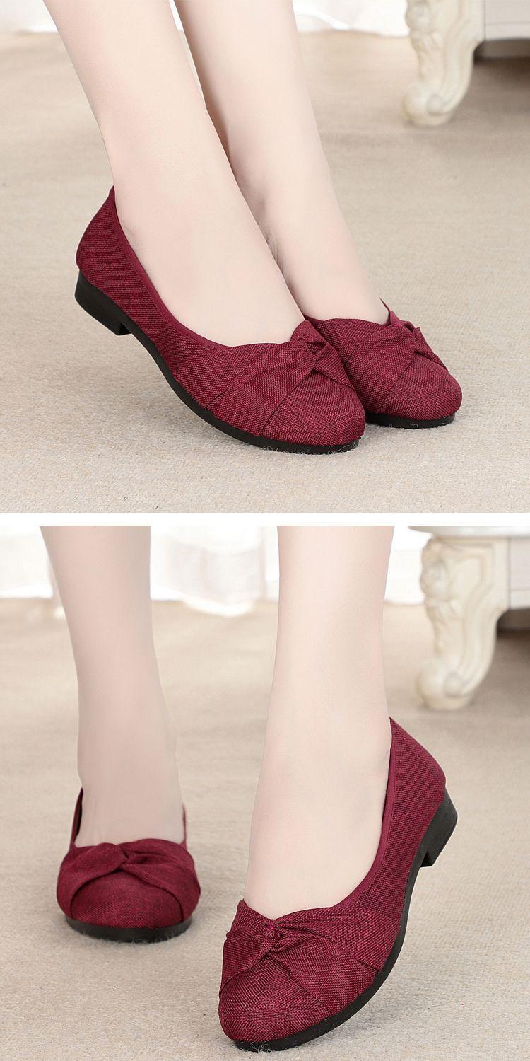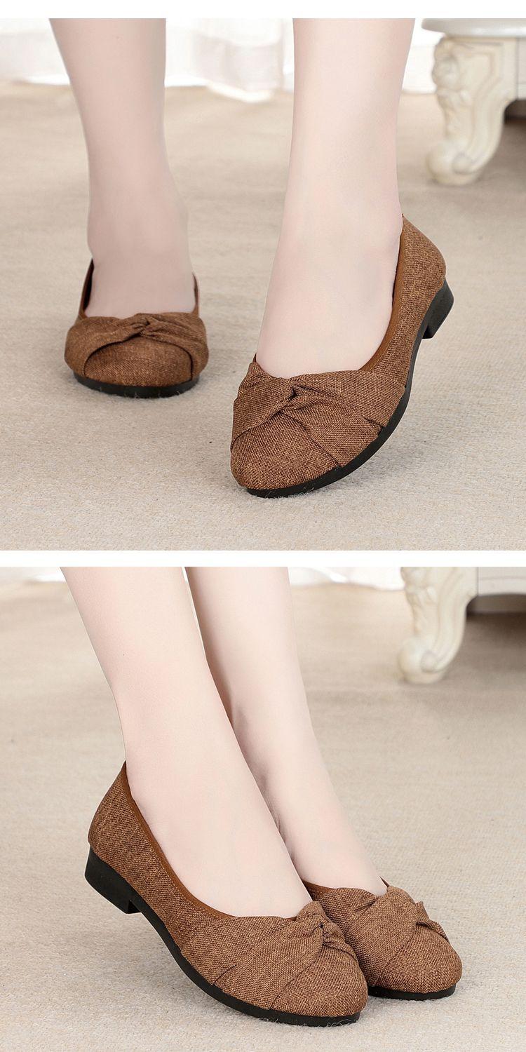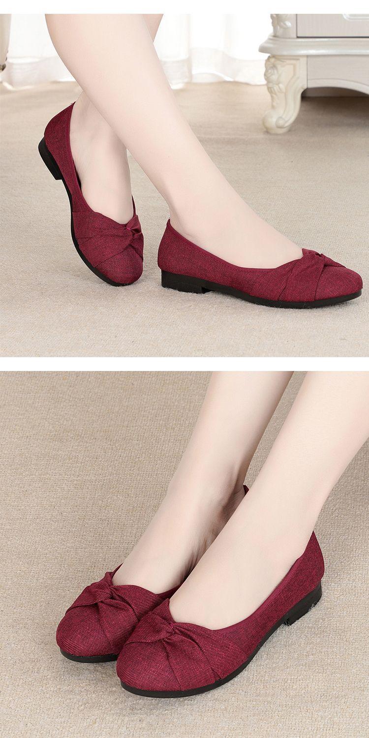 Zapatos de tela antiguos de Beijing para mujer, primavera y verano, suela suave, tacón plano, antideslizantes, transpirables, para mamá, zapatos de trabajo planos y cómodos.
