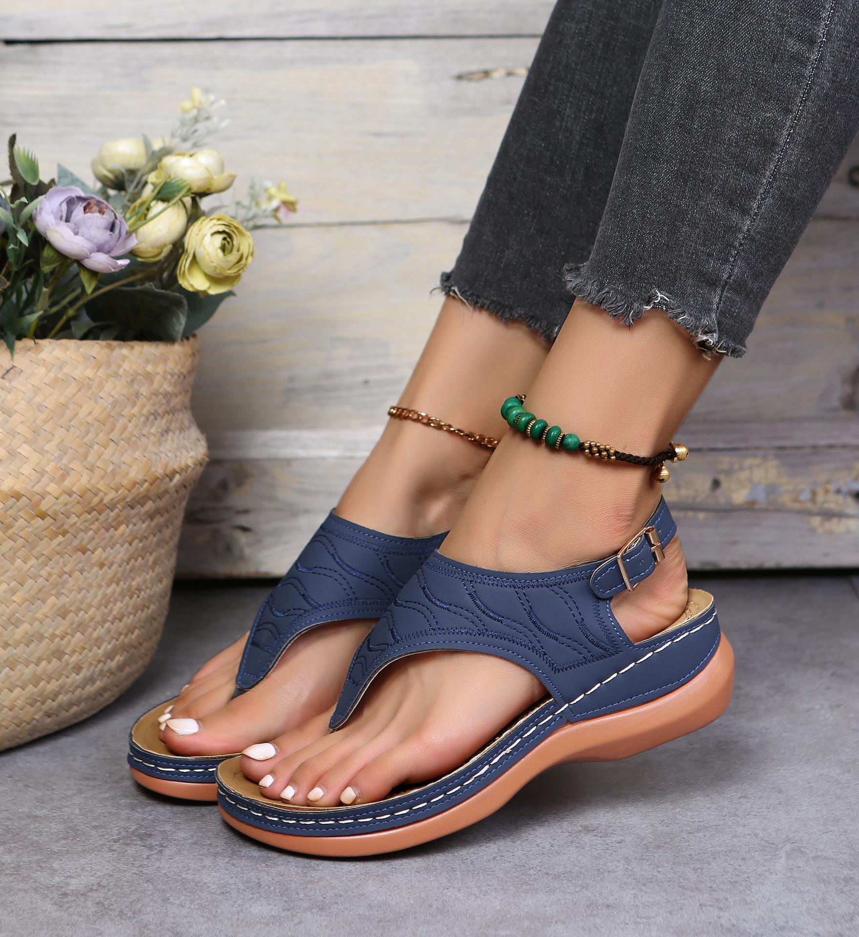 Sandalias bordadas con punta de cuña para mujer, sandalias de playa con plataforma de color liso de Amazon, comercio exterior, verano transfronterizo