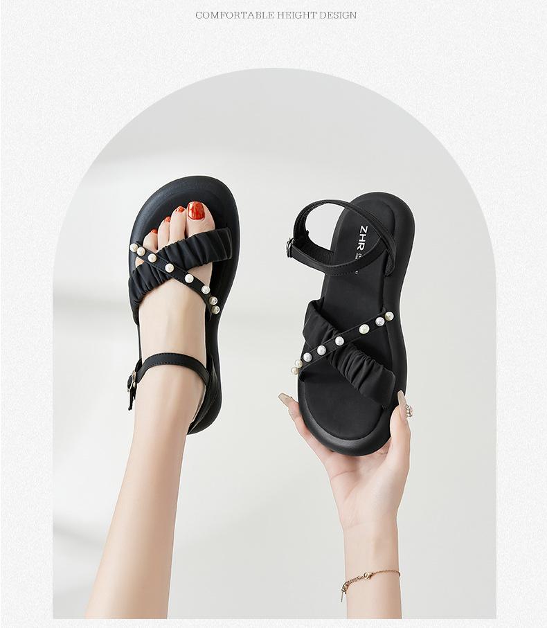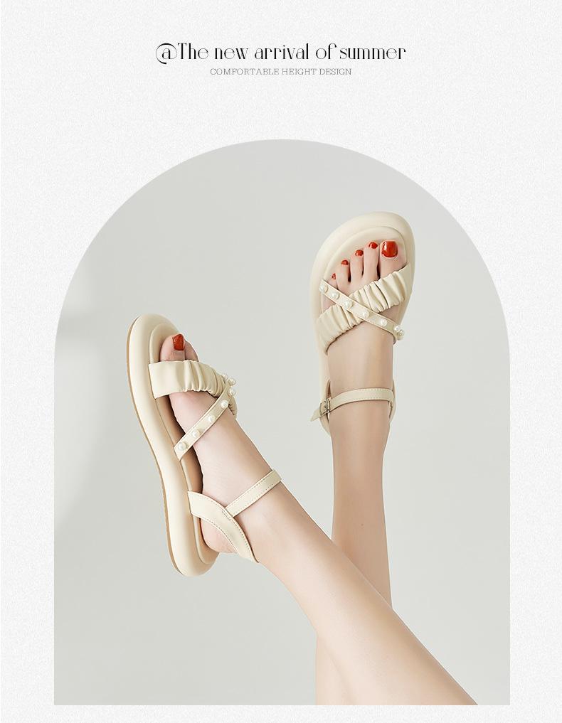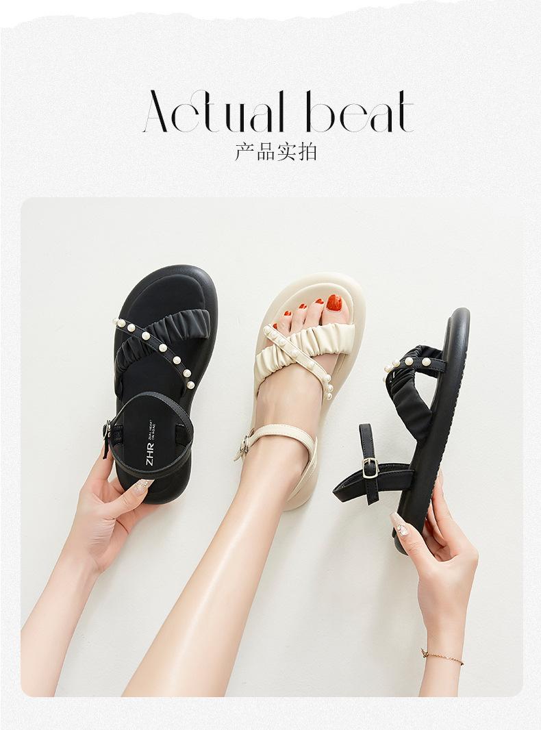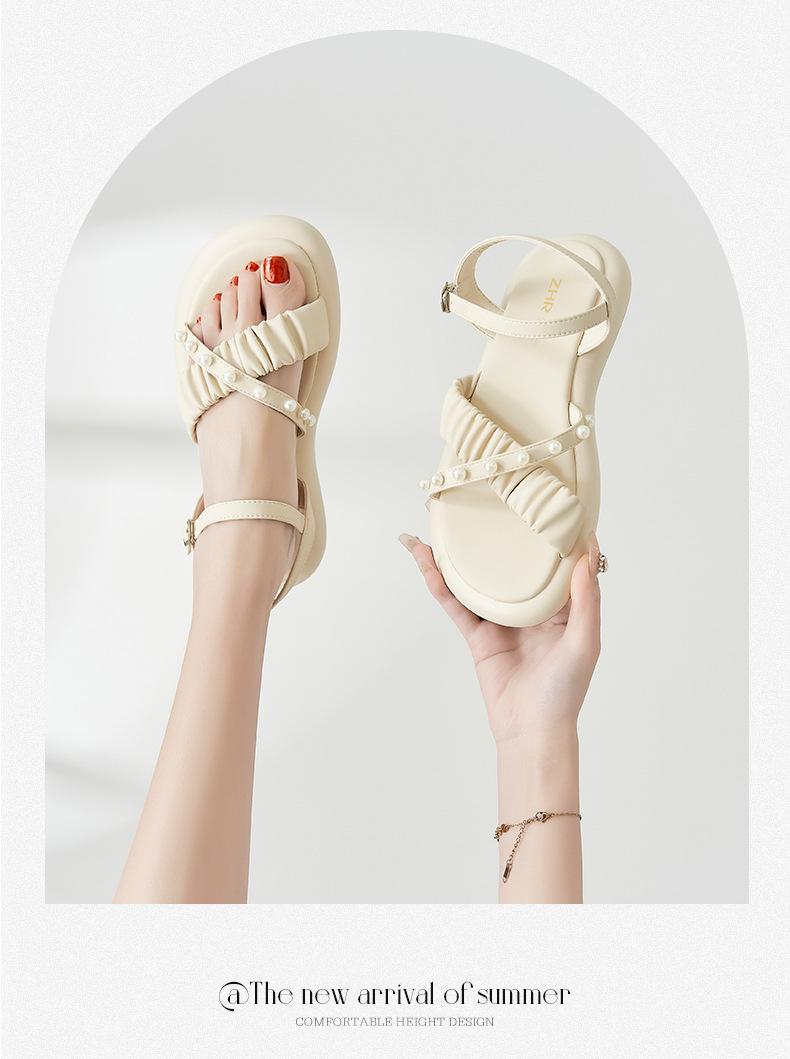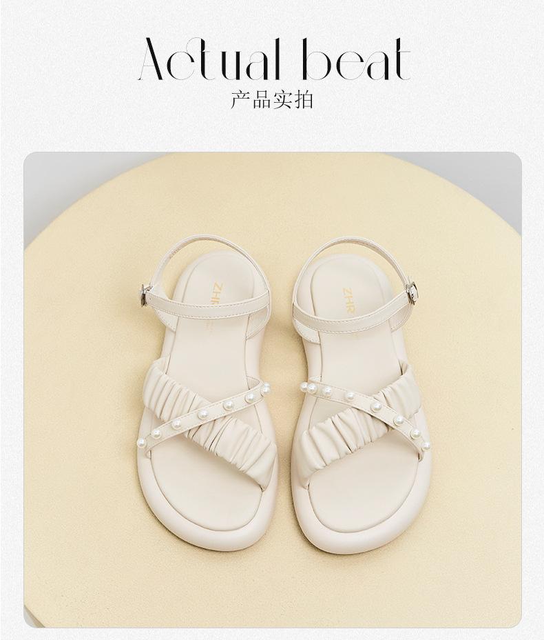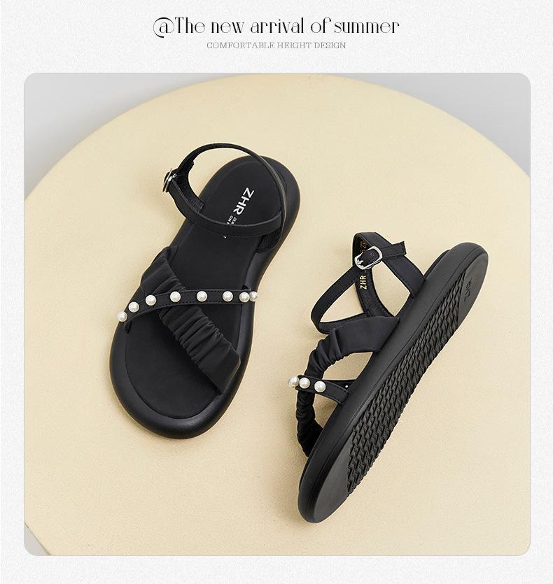 Sandalias de perlas francesas ZHR para mujer, verano 2023, nuevas sandalias elegantes con tiras cruzadas y suela suave y ligeras