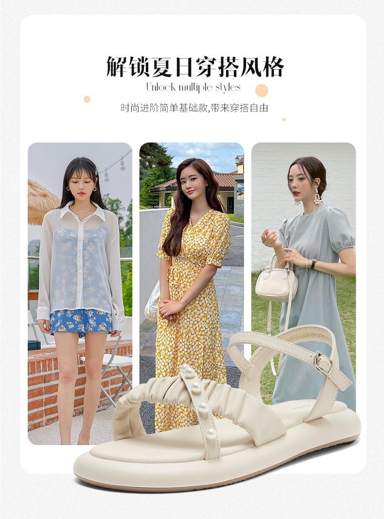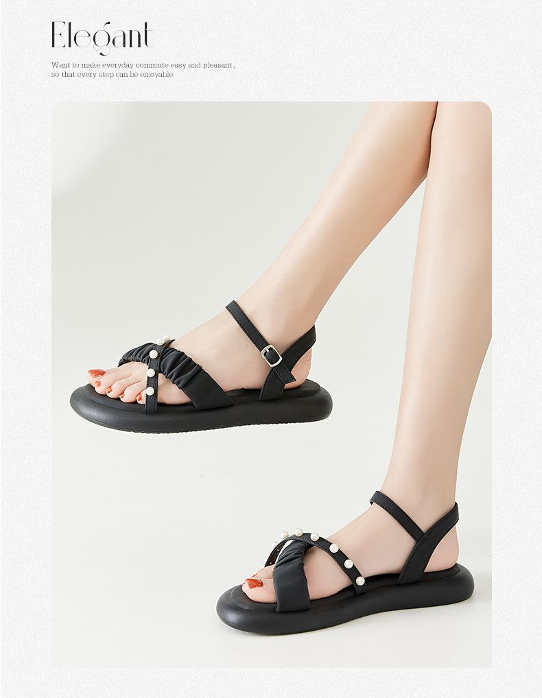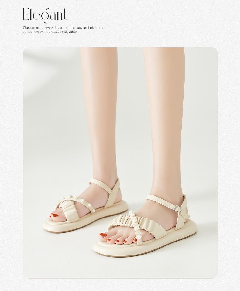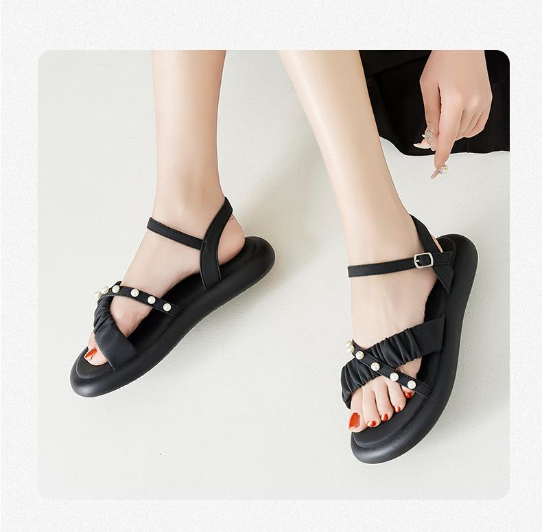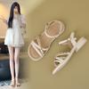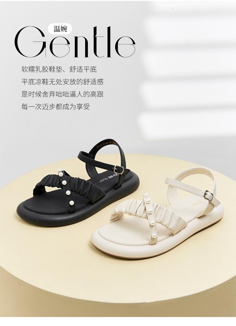 Sandalias de perlas francesas ZHR para mujer, verano 2023, nuevas sandalias elegantes con tiras cruzadas y suela suave y ligeras