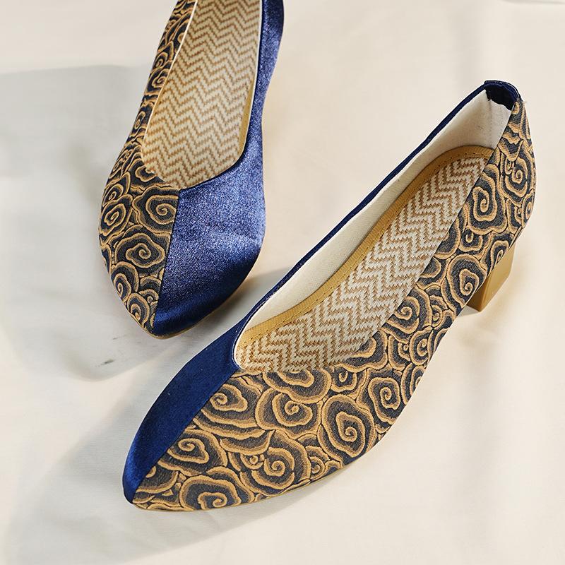 2024 nuevos zapatos de tacón alto para mujer de primavera y verano, zapatos cheongsam de suela blanda transpirables de estilo étnico bordados a mano, zapatos bordados de nuevo estilo chino